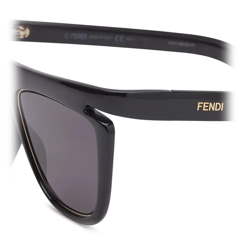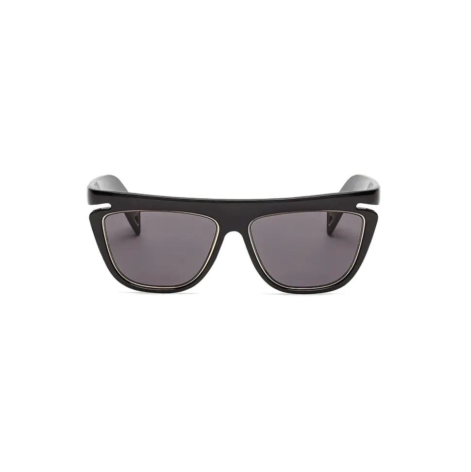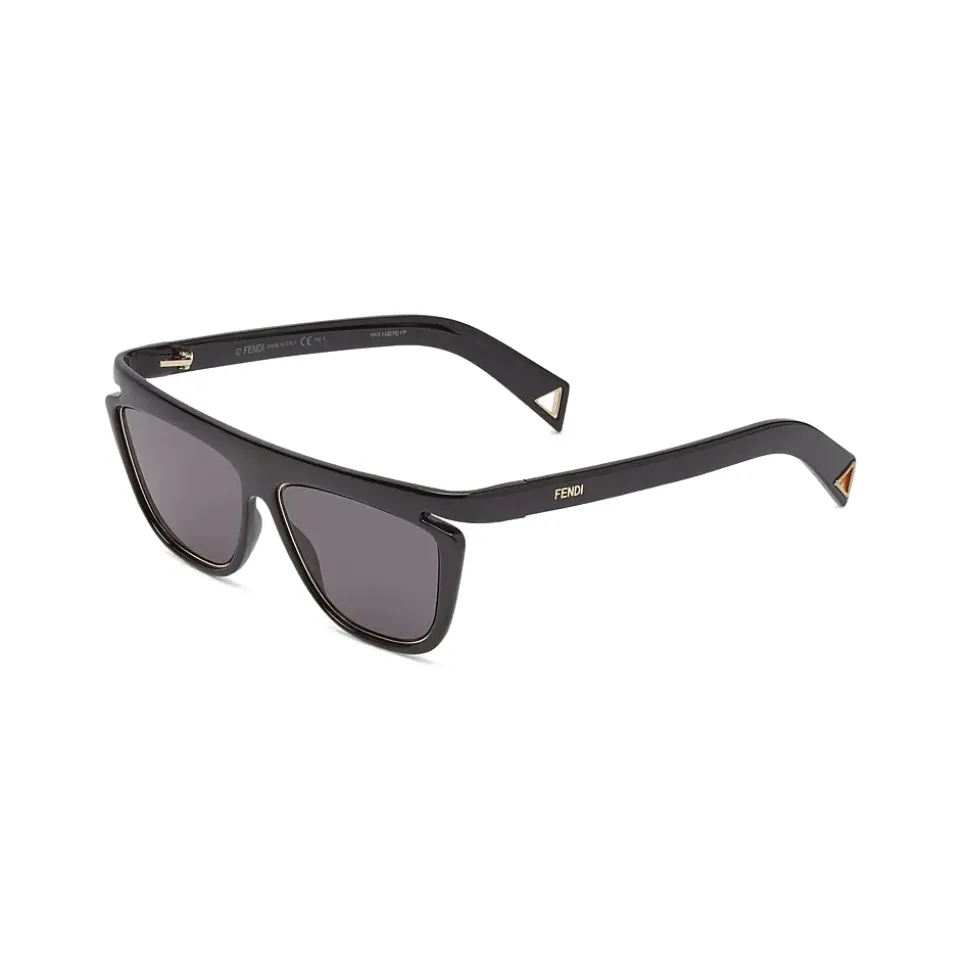 FFluo square sunglasses made of black optyl. The gray lenses are rimmed with a golden metal detail that is repeated with a triangular design at the temple tips. Gray lenses. Made in Italy.