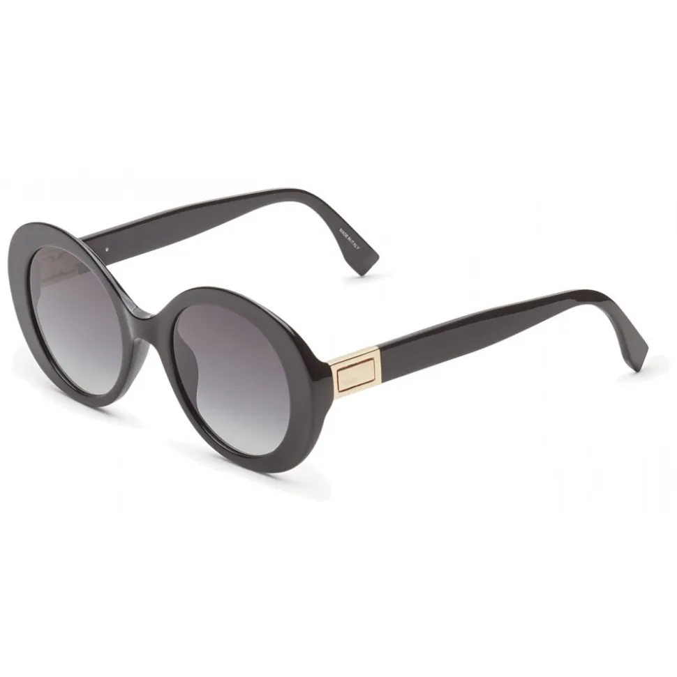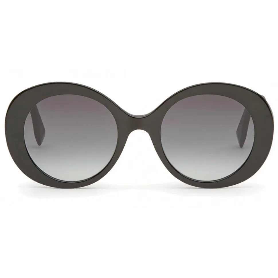 Peekaboo sunglasses with a large oval shape in black acetate. Ladylike and sophisticated, the model is characterized by the pink gold zipper with engraved Fendi logo, inspired by the iconic Peekaboo bag. Internal customization of the auction with hot stamped “Peekaboo”. Gray gradient lenses.
