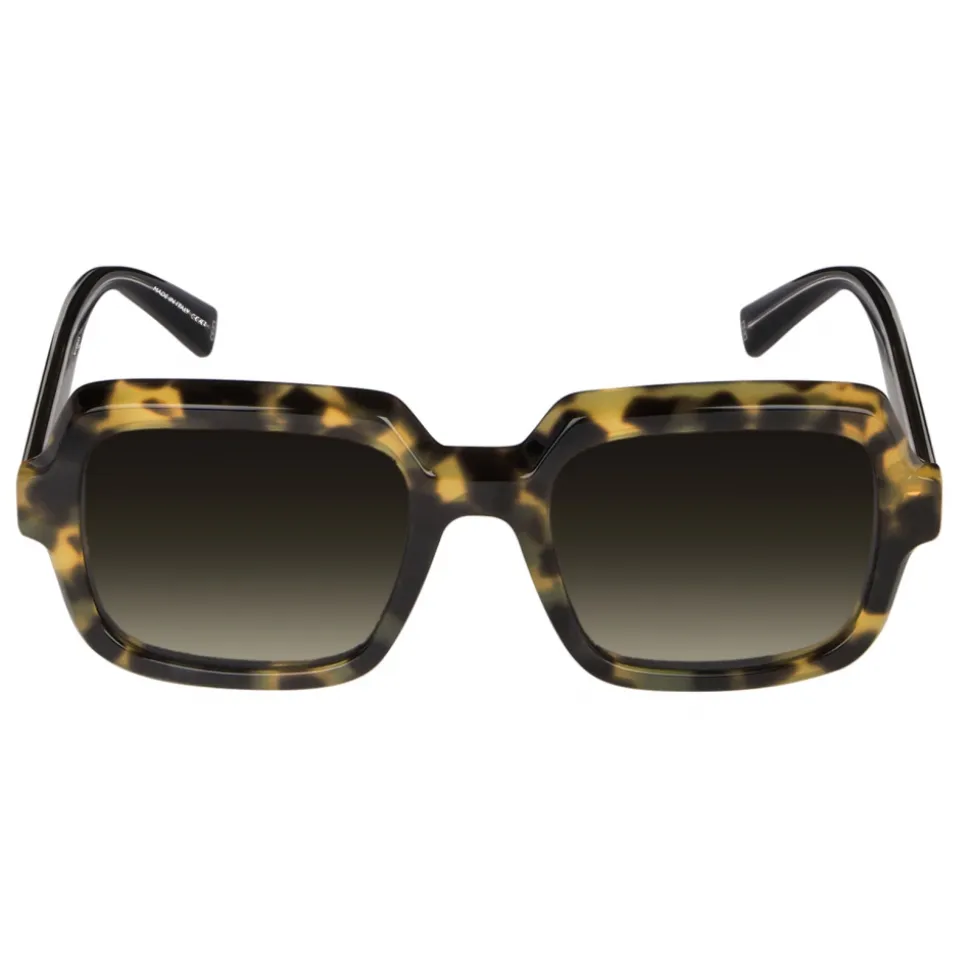 GV Anima sunglasses in acetate and optyl with yellow-Havana brown retro-style square frame, black temples, ruthenium-finish metal insert with GIVENCHY signature engraved inside of the temples and shaded brown lenses. UV protection rating 3. Sunglasses come in a hard case.