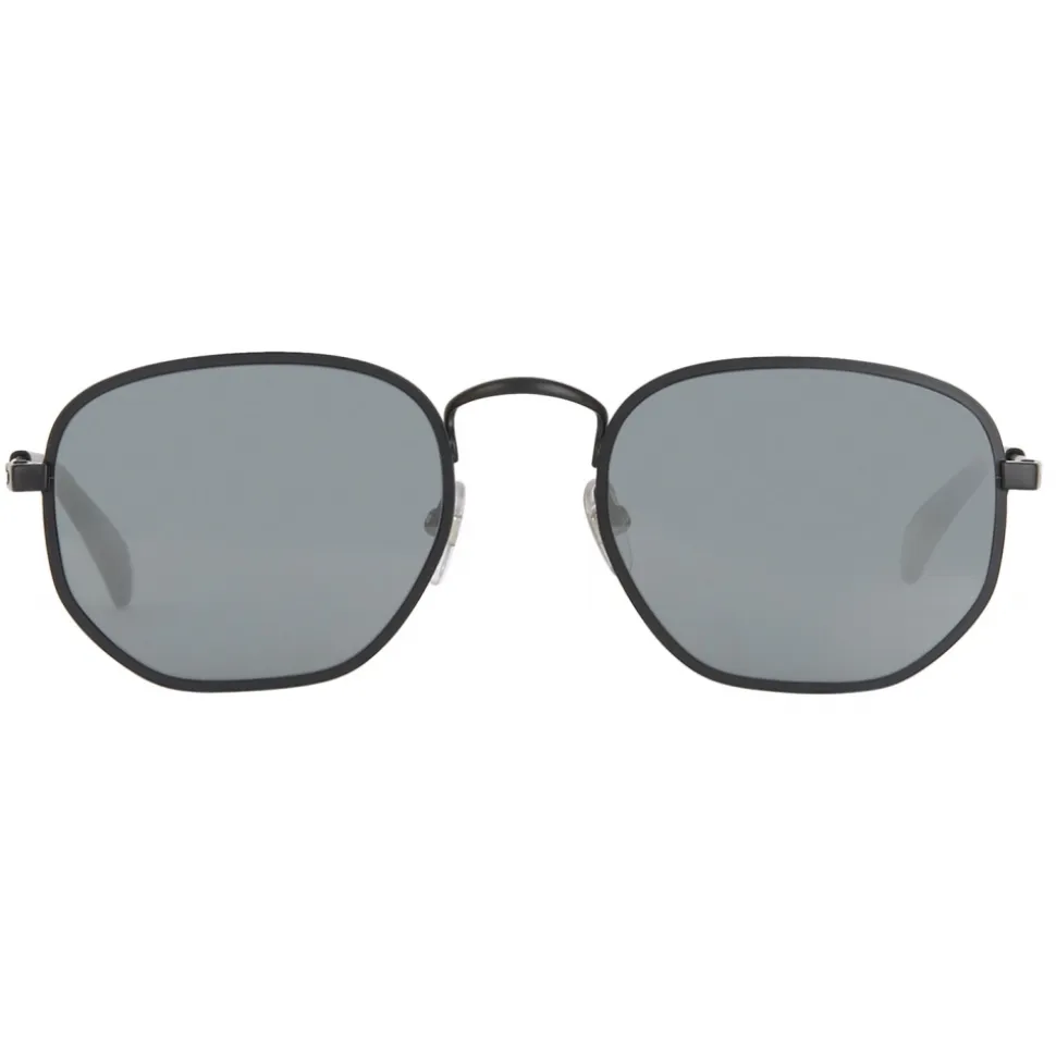 Caravane GV Navigator sunglasses in matte black metal with mirrored gray lenses and black acetate tips. 4G Square emblem engraved on the sides and GIVENCHY signature engraved on the top of the temples. UV protection rating: 3. Sunglasses come in a hard case.