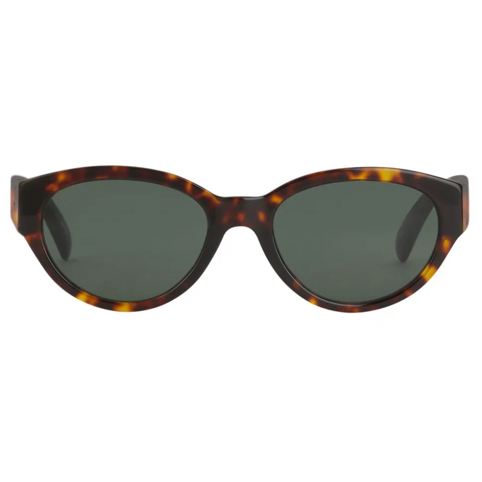 GV3 sunglasses with rounded frame in dark Havana acetate with green lenses and Double G piece in gold-finish metal on the temples. UV protection rating: 3. Sunglasses come in a hard case.