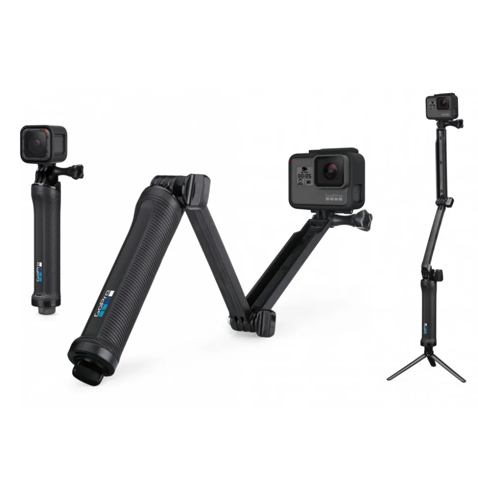 This ultra versatile mount can be used three main ways: as a camera grip, extension arm or tripod. The folding arm is perfect for POV or follow-cam footage, and makes it easy to capture selfies without the mount appearing in the shot. When detached from the arm, the handle doubles as a camera grip. Stored inside the handle is a lightweight, mini tripod that can be removed and used on its own or combined with the handle. Expands to 20in (50.8cm), collapses to 7.5in (19cm).