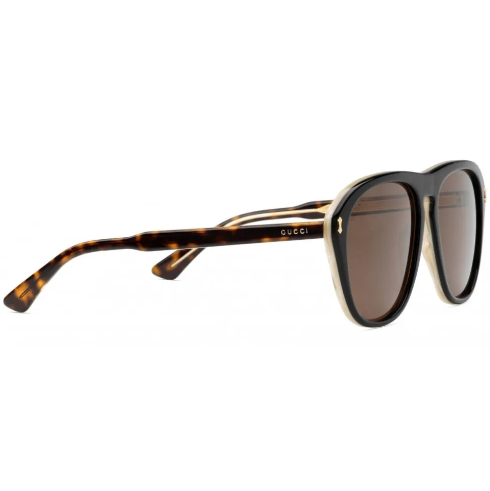 Tortoiseshell acetate temples with Gucci logo and engraved metal core