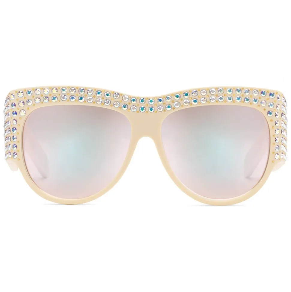 Iridescent hand-applied crystals illuminate these oversized sunglasses from the Hollywood Forever collection. The ivory acetate frame is further enhanced by the gold-colored GG detail on the temples, which contributes to a brilliant effect.