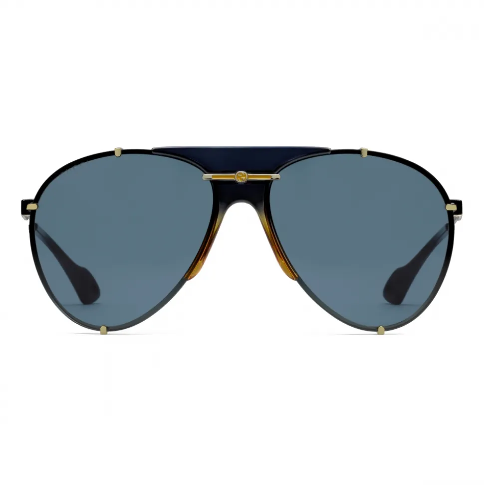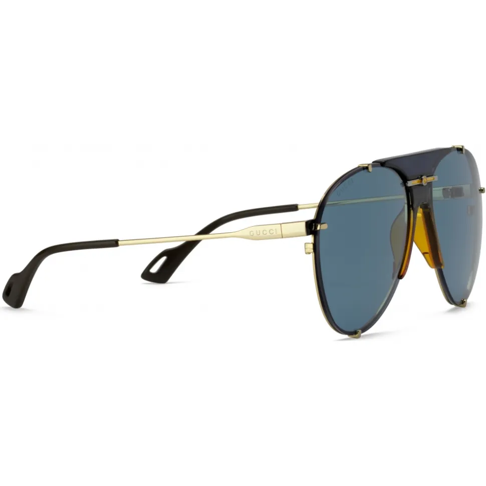 Gold metal frame with yellow enamel, Interlocking G and shaded transparent blue and yellow detail