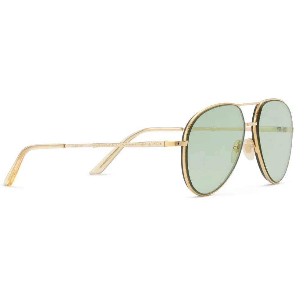 Gold metal temples with transparent yellow detail