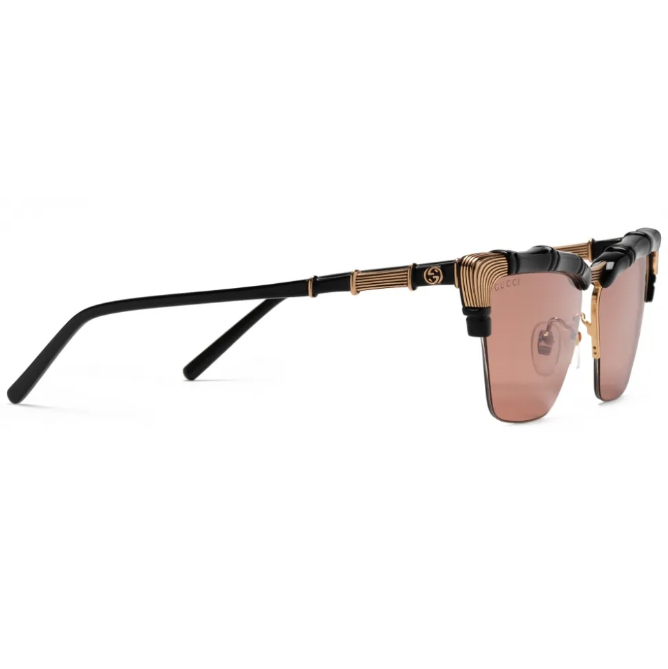 Black injected temples with bamboo effect, gold metal details and Interlocking G logo