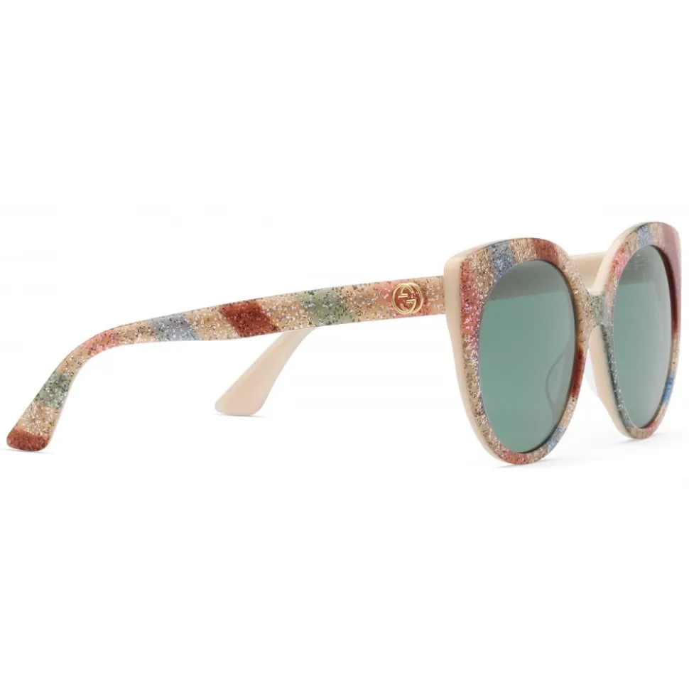 White acetate temples with multicoloured glitter stripe and gold metal GG