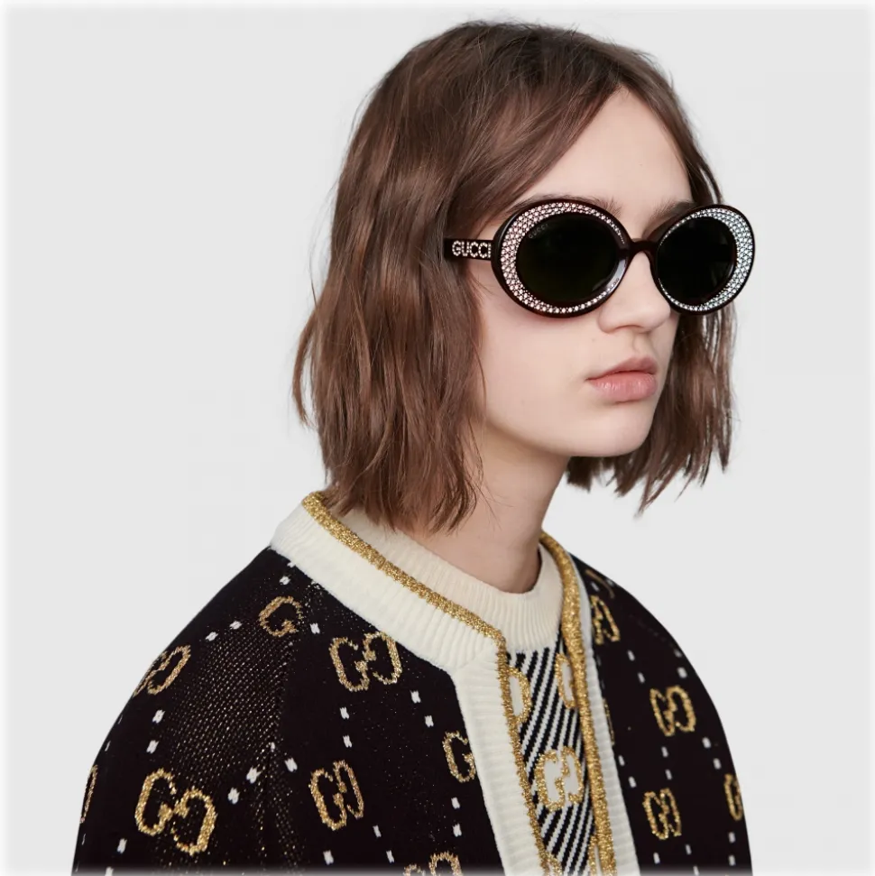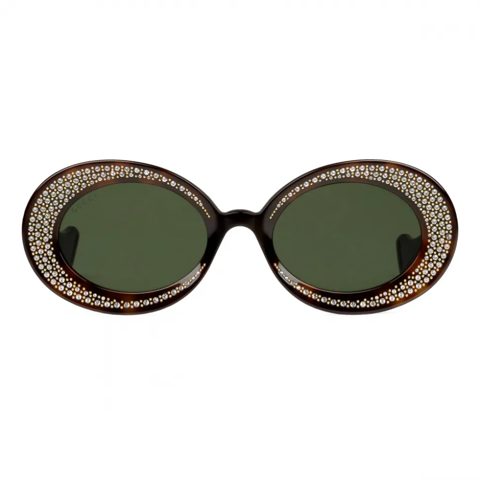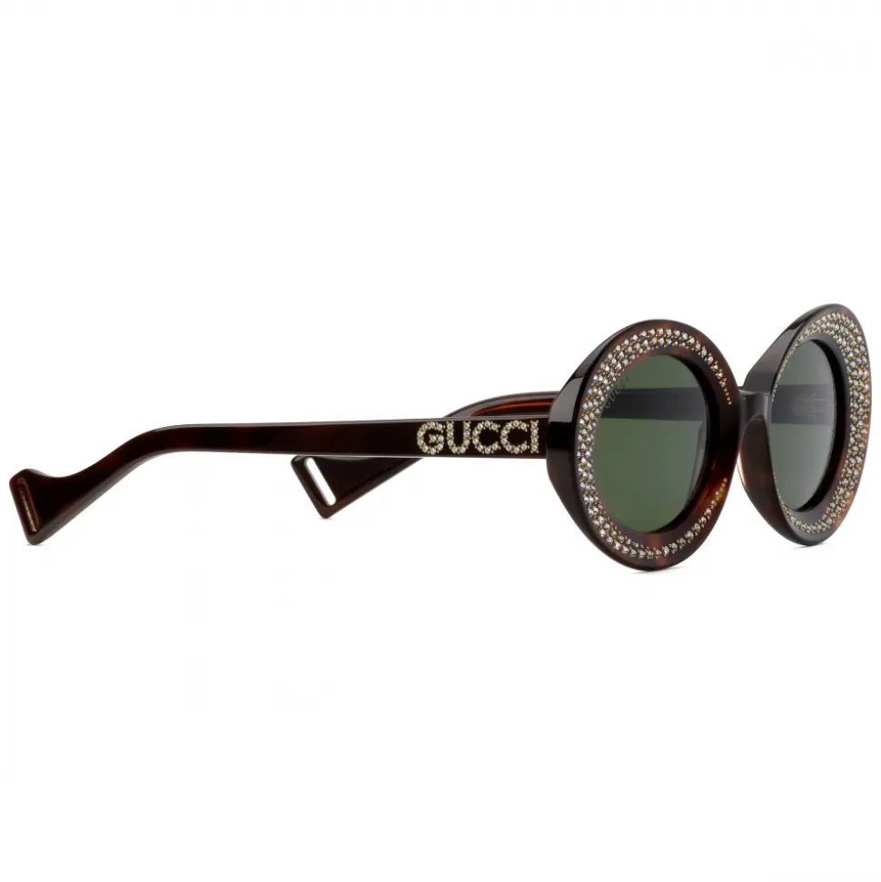 Tortoiseshell acetate frame with crystals Gucci logo and slit at the tips