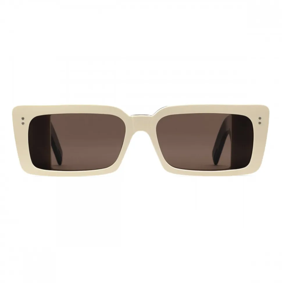 With a rectangular design, these sunglasses are characterized by a game of contrasts. In the frame, the external side in white acetate and the inner side in acetate with a horn effect are interspersed with a layer of tortoiseshell acetate. The Gucci logo decorates the black acetate temples, a slit on the terminals.
