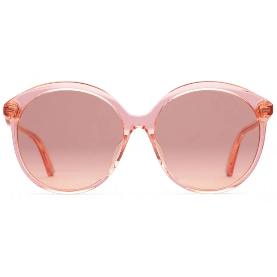 Transparent peach acetate frame with an eighties influenced shape