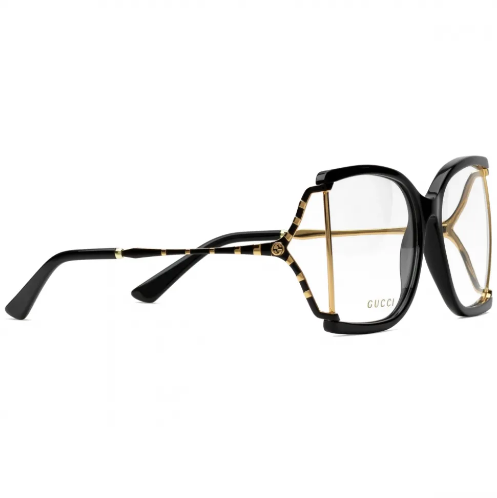 Gold metal temples with black enamel details, Interlocking G logo and black acetate temple tips