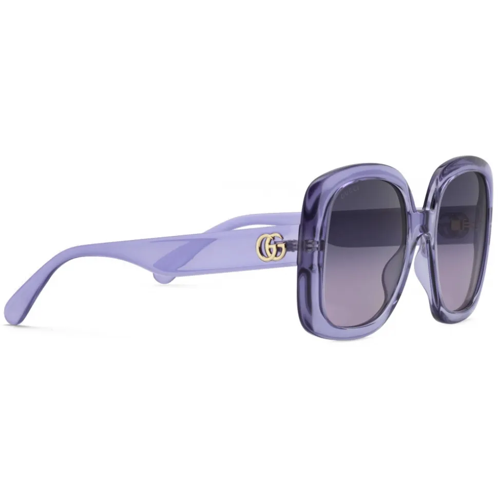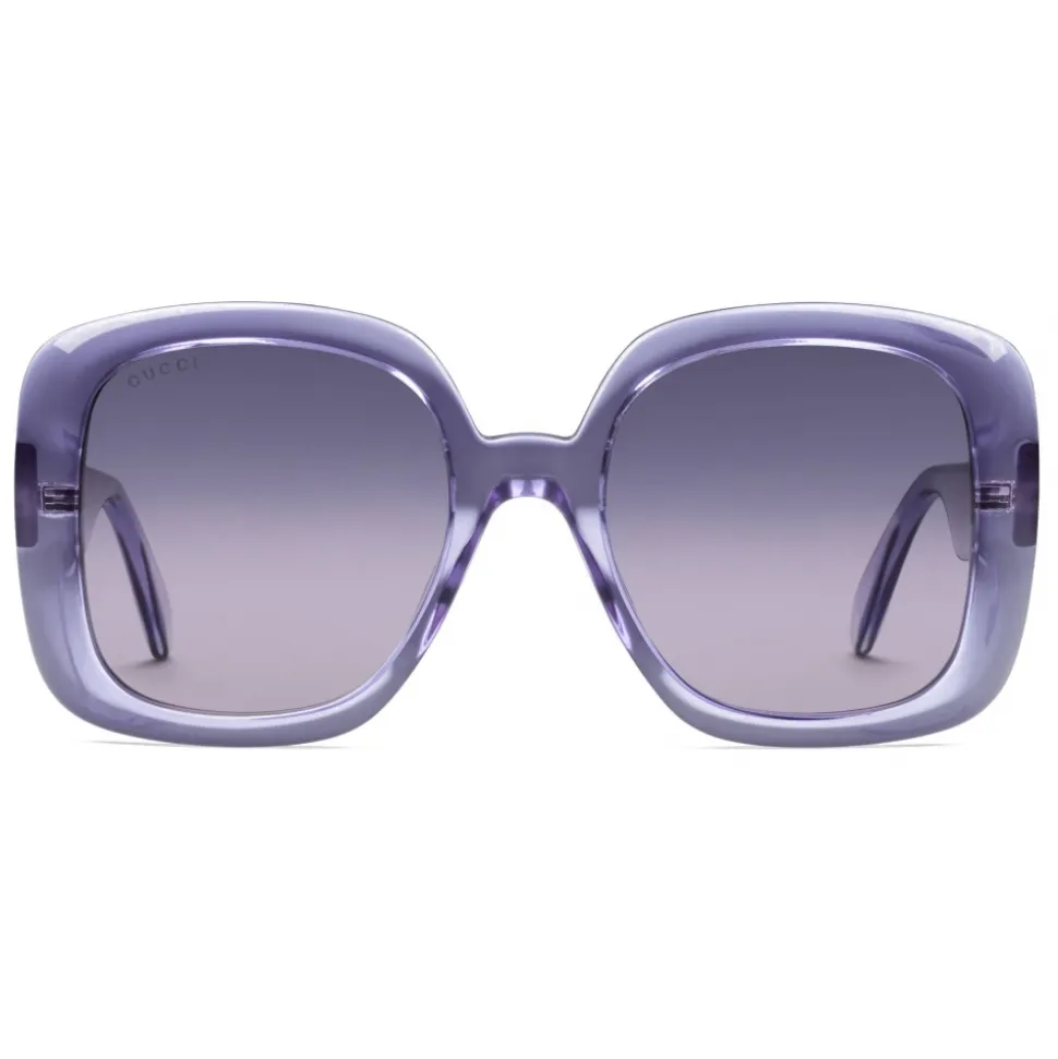 Purple frames add a pop of color in square-shaped sunglasses completed with shaded lenses. The Double G detail accents the temples in a gold tone for a subtle nod to the House’s logo.