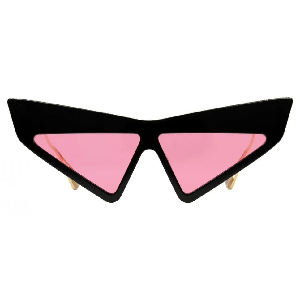 Eclectic evolution of the classic mask model, sunglasses make their first appearance in the 50s. Reimagined in a futuristic way, the geometric shape is enriched with references to pop culture and Optical Art. Presented in black acetate, these retro-inspired mask glasses add an eccentric note to the look of the new collection.