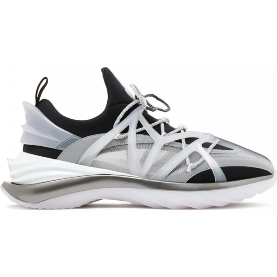 Jimmy Choo – Cosmos/M Calf Leather Low Top Sneakers – Black White Light Grey – Jimmy Choo Exclusive Luxury Collection