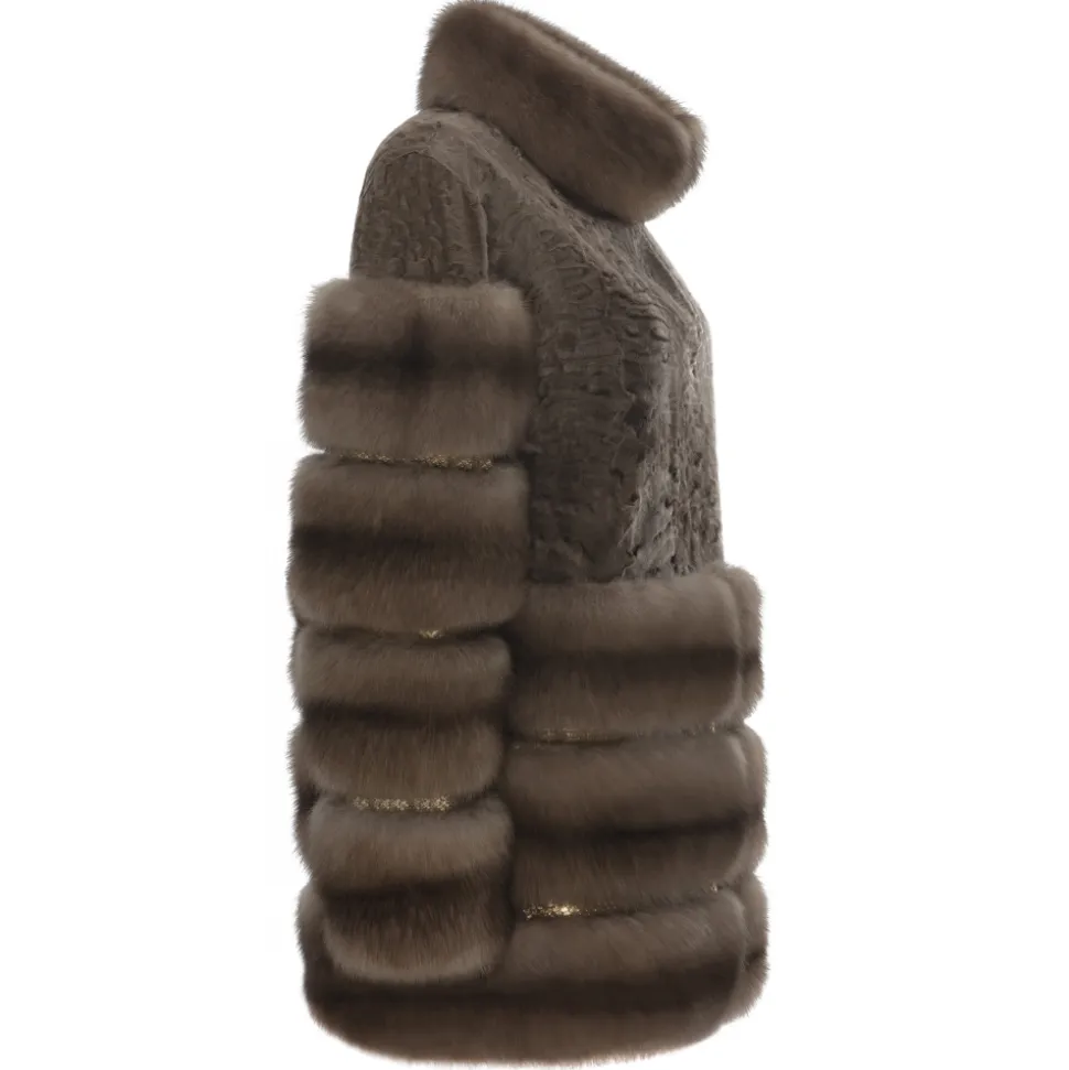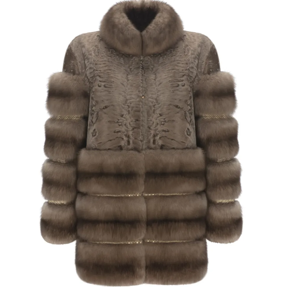 La Prima Luxury – Alisa – Swakara Perisano Fur – Dove Sable Inserts – Hand-Painted Python – Hooks in 18 kt Gold – Fur Coat – Luxury Exclusive Collection