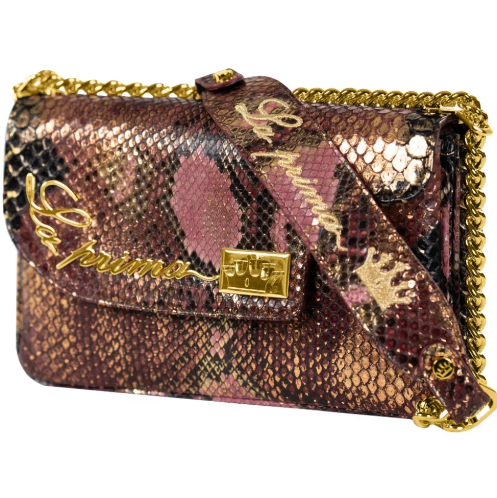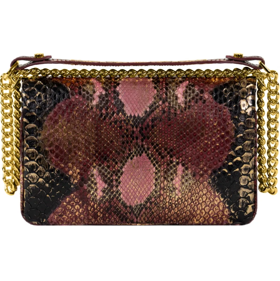 Saddle shoulder bag python hand painted Ottobre color with gold details.