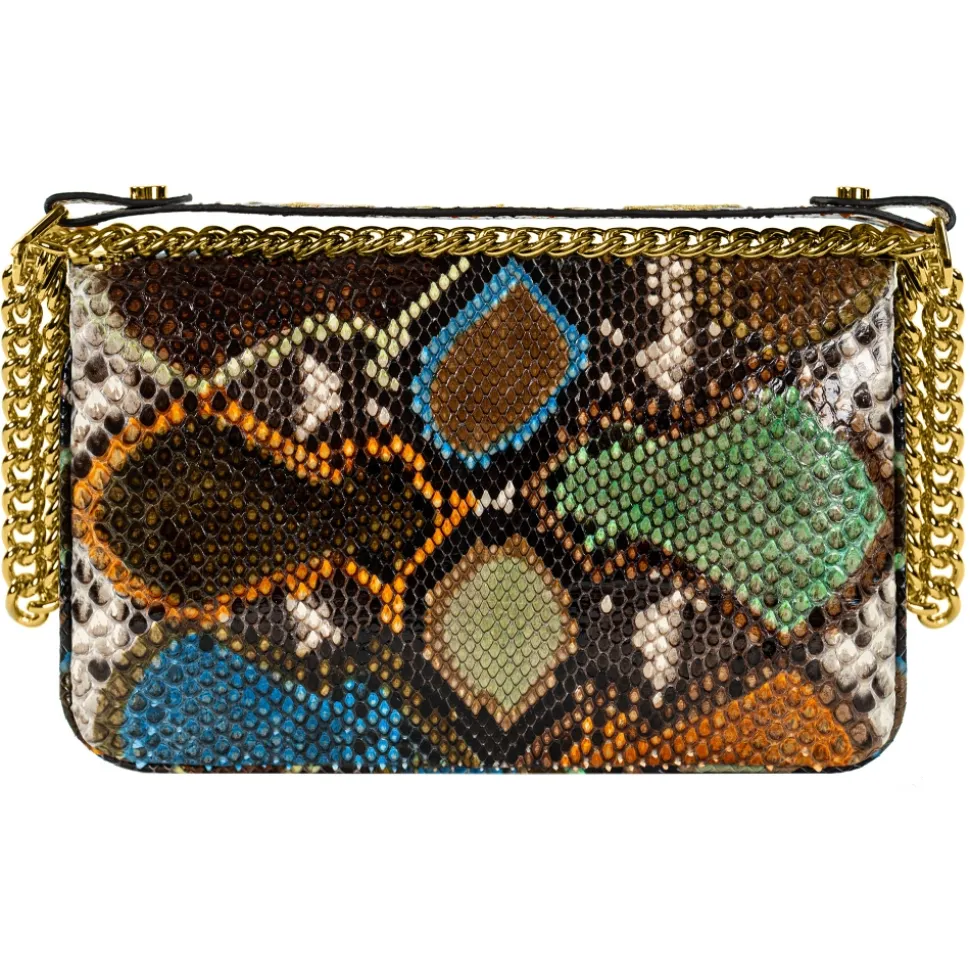 Saddle shoulder bag python hand painted Vanessa color with gold details.