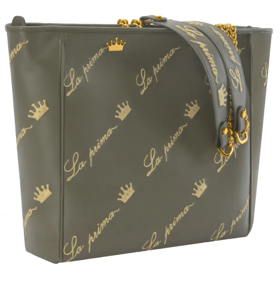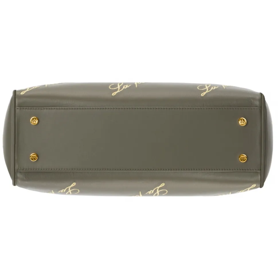 Shopper nappa color military with embroidery and golden details.