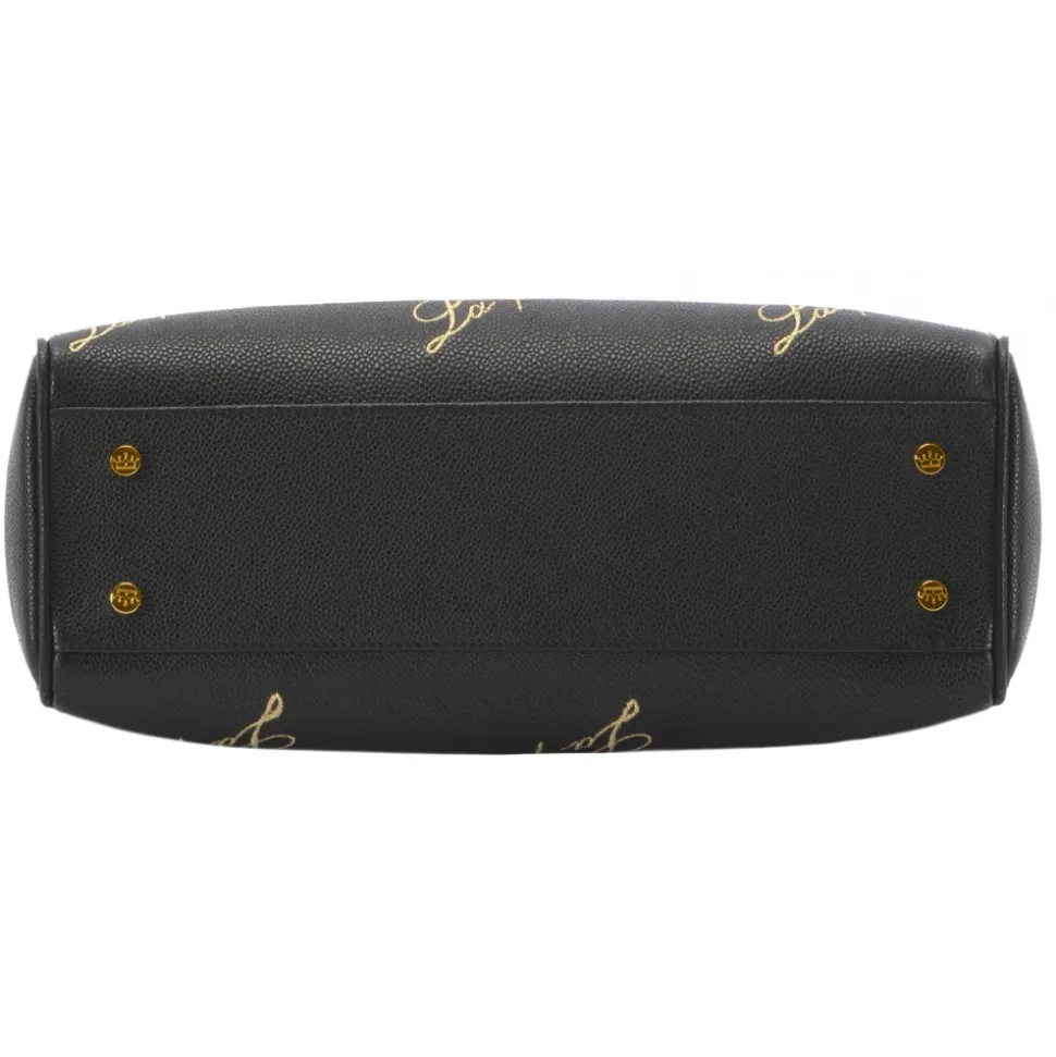 Shopper nappa drummed dry black color with embroidery and golden details.