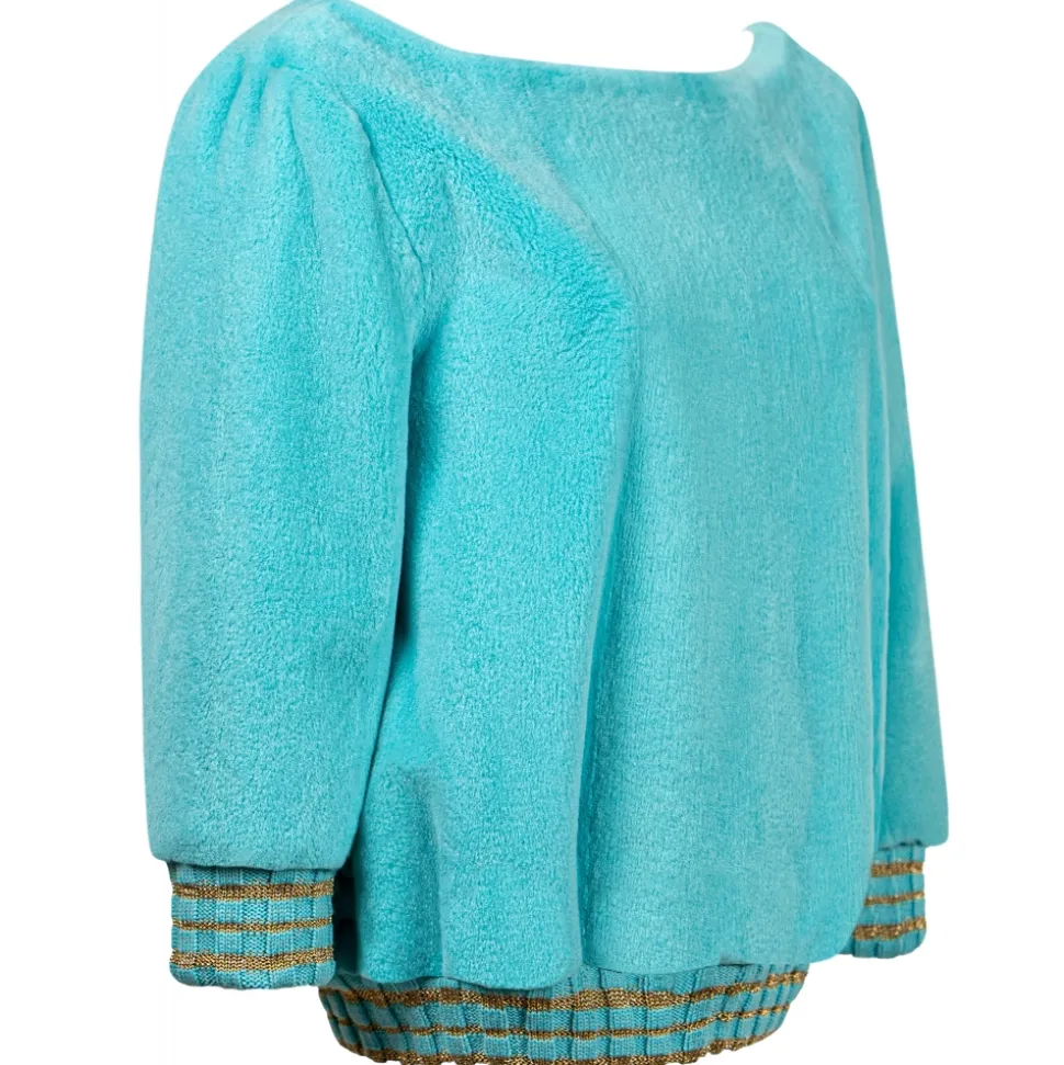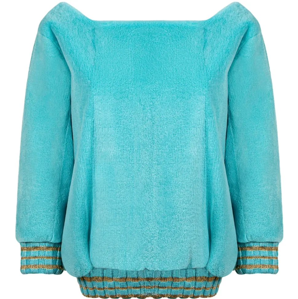 La Prima Luxury – Light Blue – 8 mm Shaved Mink Fur in Ruby – Cashmere and Gold Thread Edges – Fur Coat – Luxury Exclusive Collection