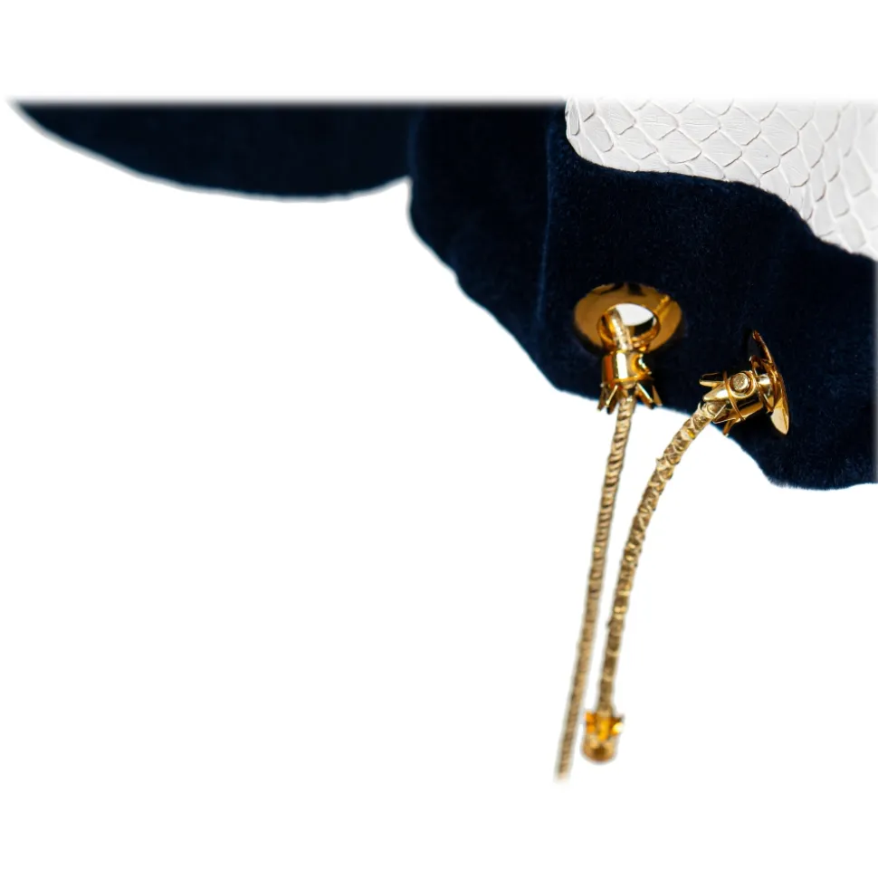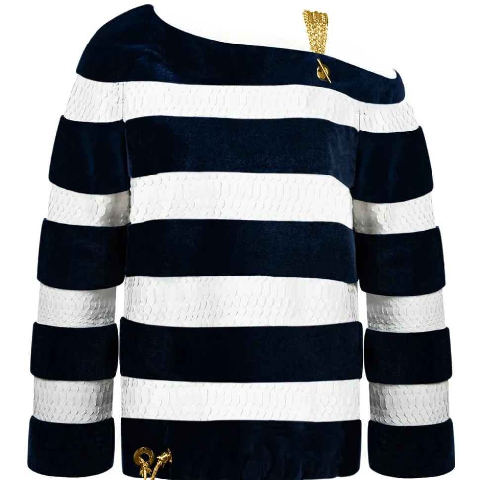 La Prima Luxury – Marina – One-Shoulder Fur in Shaved Blue Mink – Inserts in Optical White Python – Gold Plate Chain – Fur Coat – Luxury Exclusive Collection
