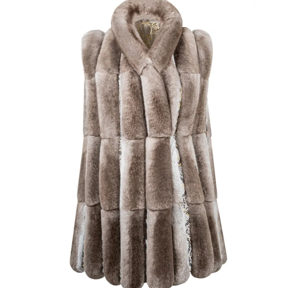 La Prima Luxury – Soffio Beige – Beige Leather Gillet – Inserted In White Python – 18 kt Gold Hooks – Fur Coat – Luxury Exclusive Collection