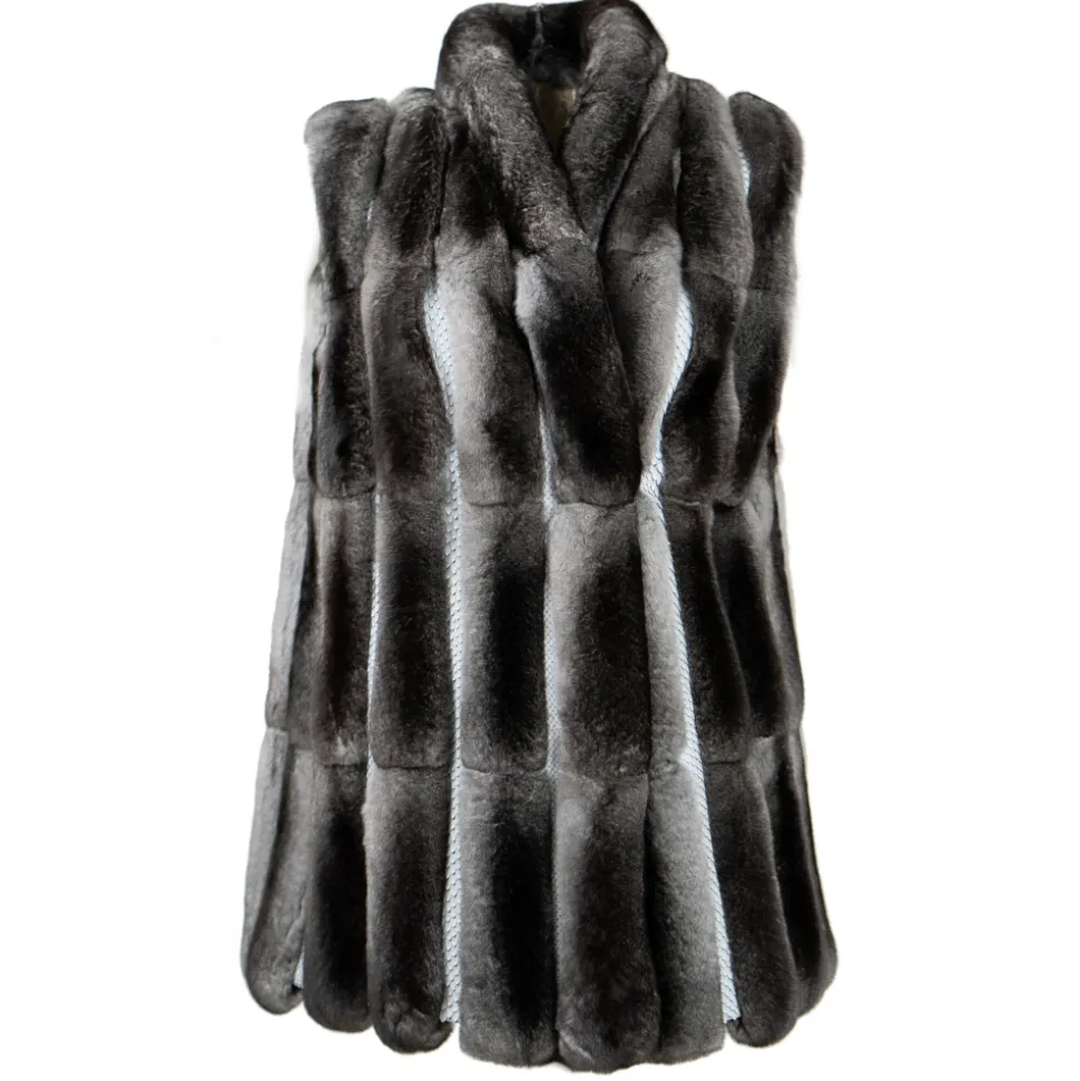 La Prima Luxury – Soffio Grigio – Grey Leather Gillet – Inserted In White Python – 18 kt Gold Hooks – Fur Coat – Luxury Exclusive Collection