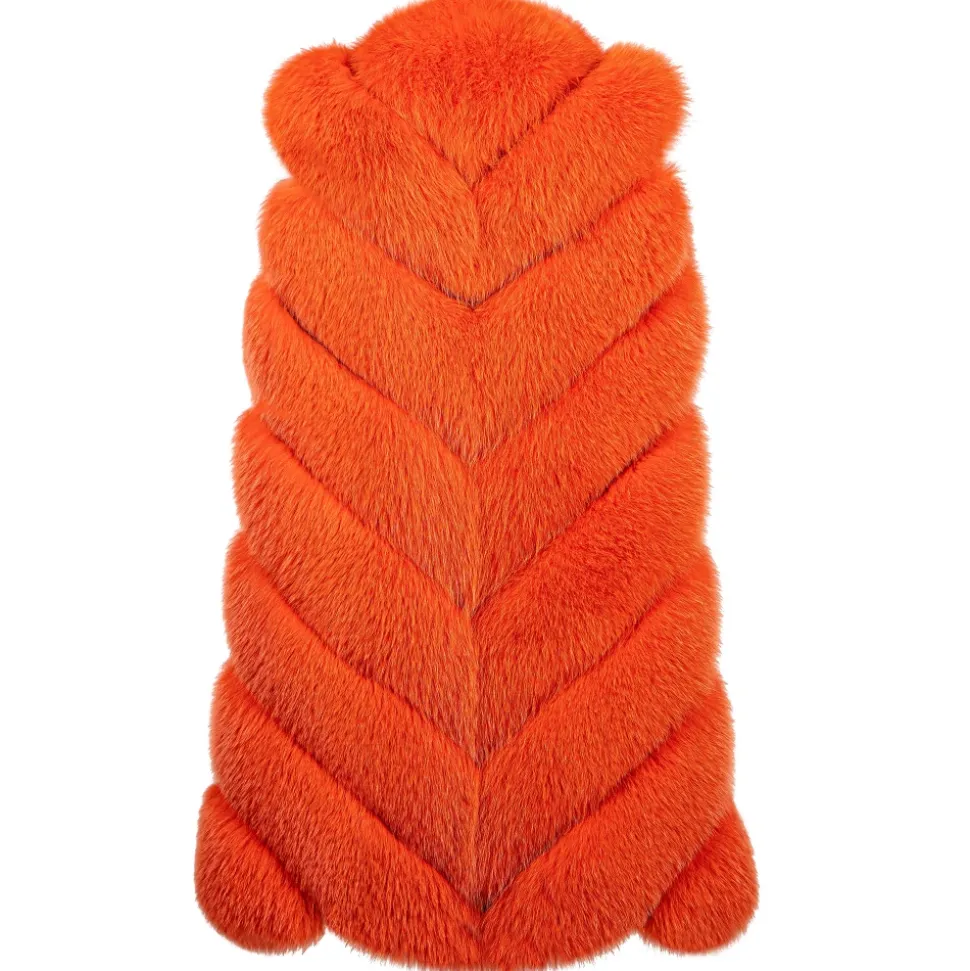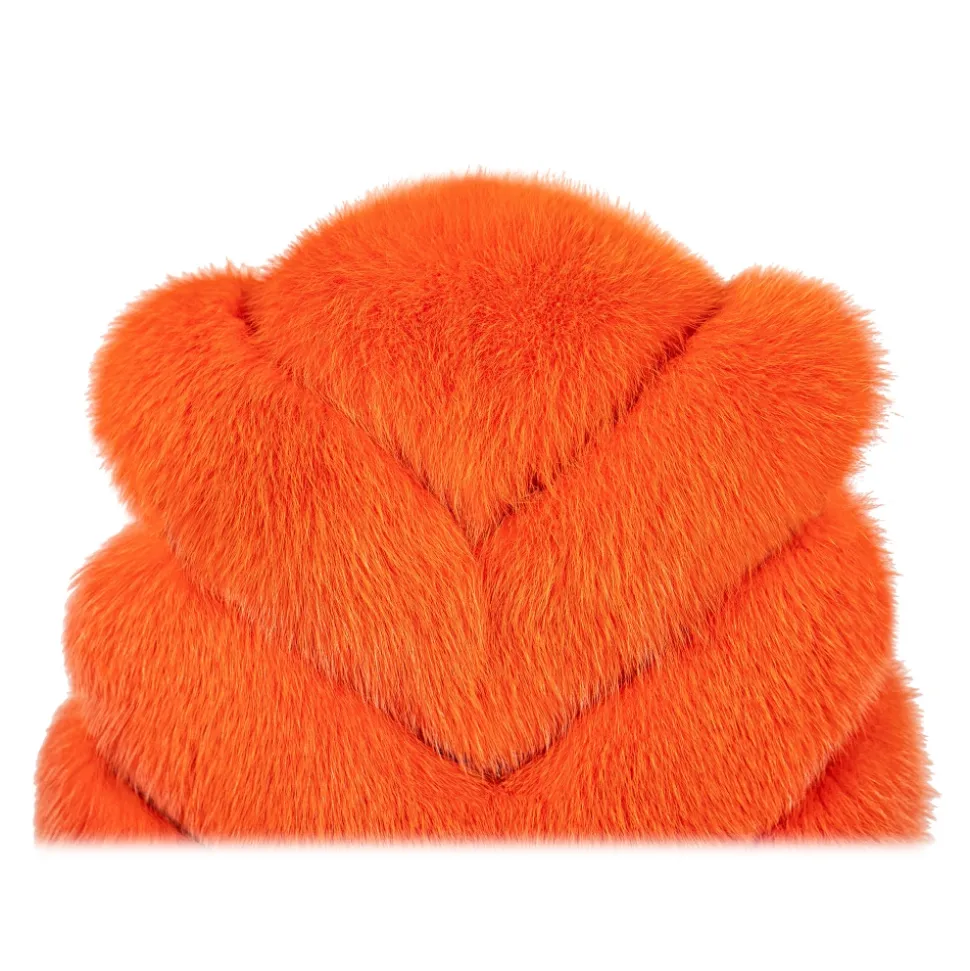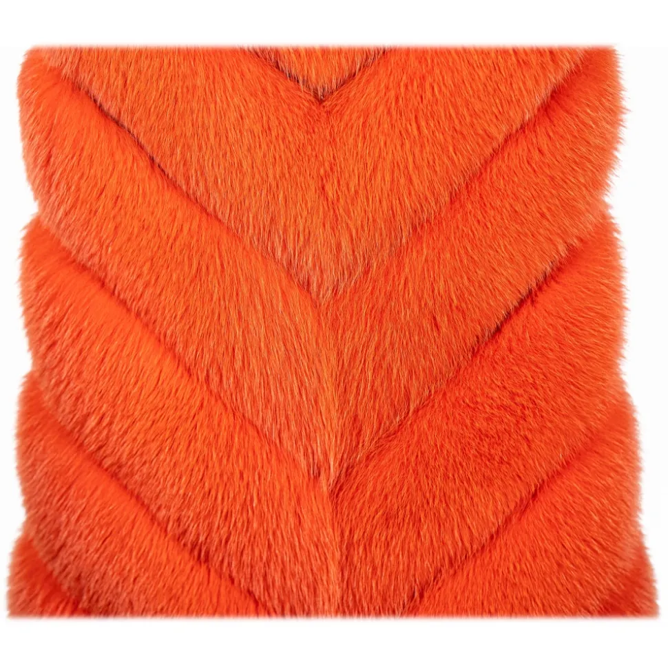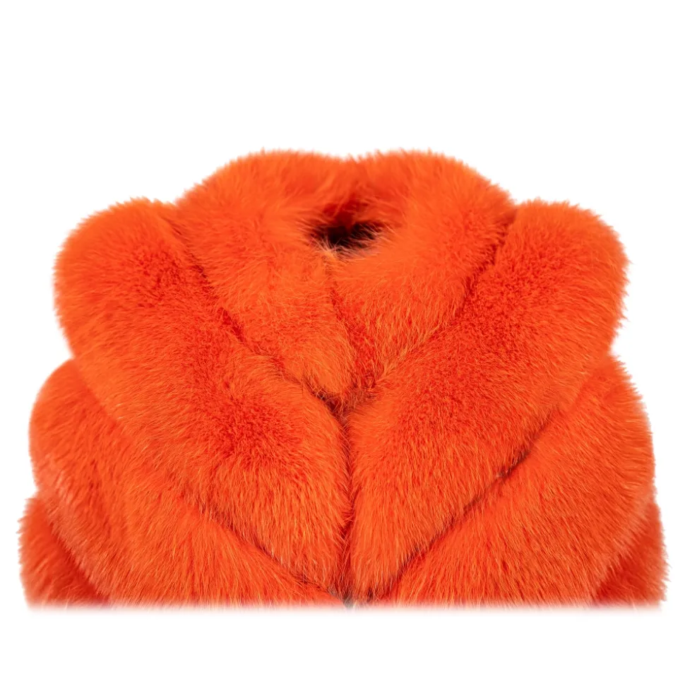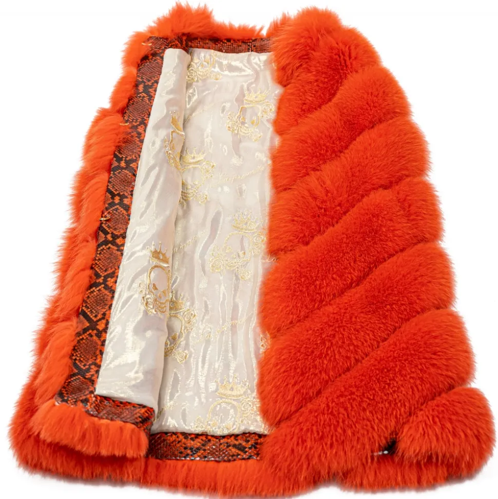 La Prima Luxury – Spiga Arancio – Orange White Shadow Fox Fur – Hand Painted Python Inserts – 18 kt Gold Hooks – Fur Coat – Luxury Exclusive Collection