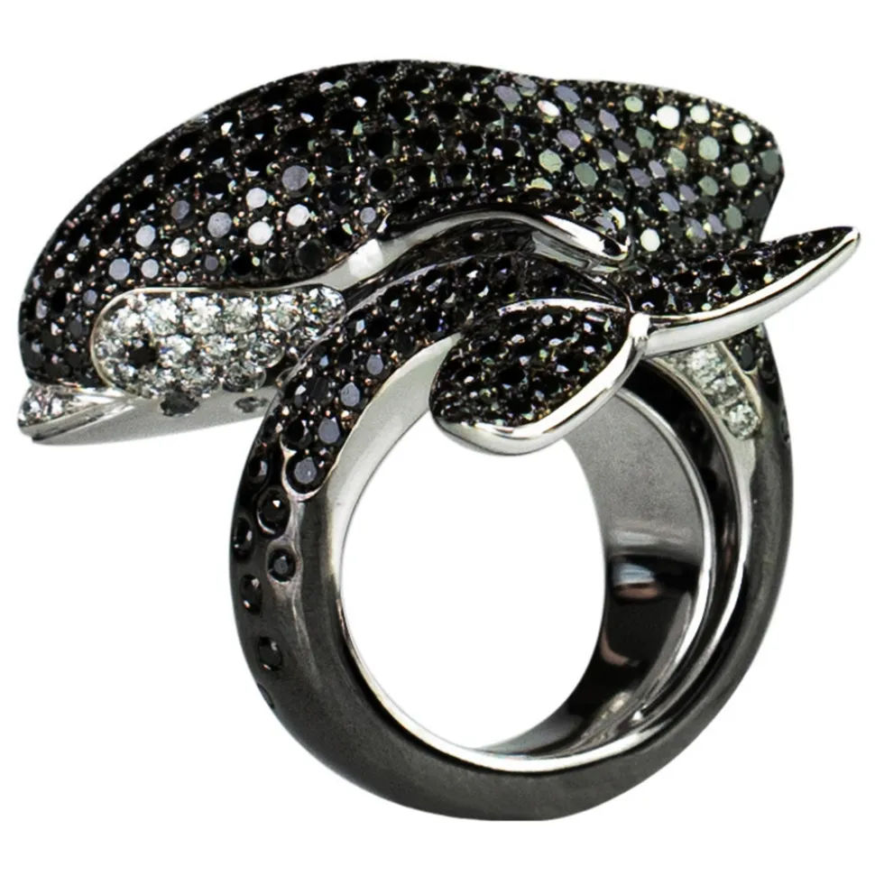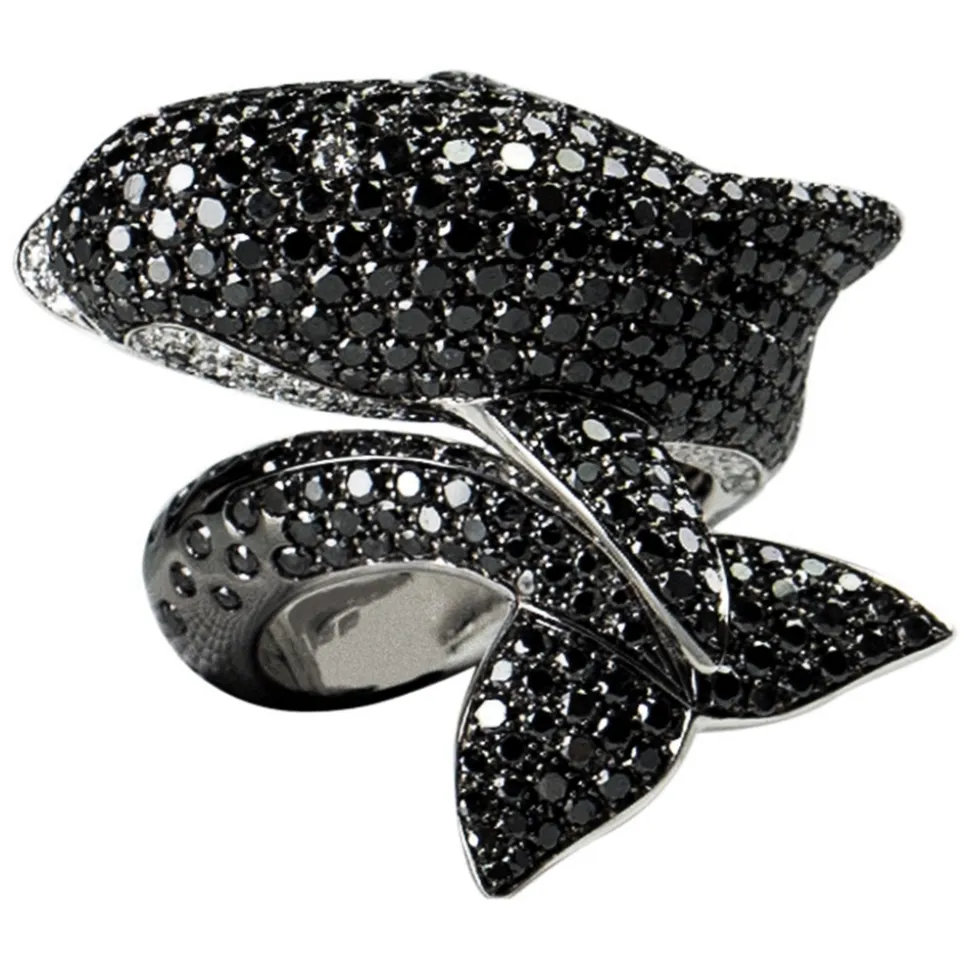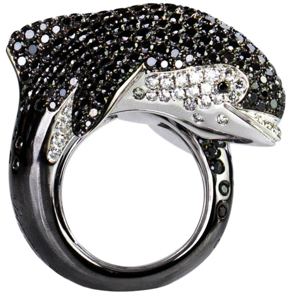 The tail of the orca returns to the diameter of the finger in an enveloping way. But don’t let it fool you. It is playful, intelligent and… free. But she smiles and says, “I won’t do what you want.” No one can imprison her in a scheme. Her hunting strategies are fascinating. Like her social relationships, which change from place to place. Our orca consists of 454 black diamonds and 57 white diamonds. All this beauty is for you.