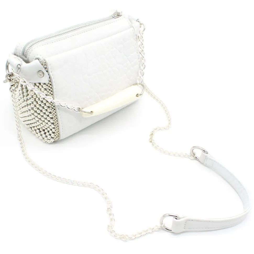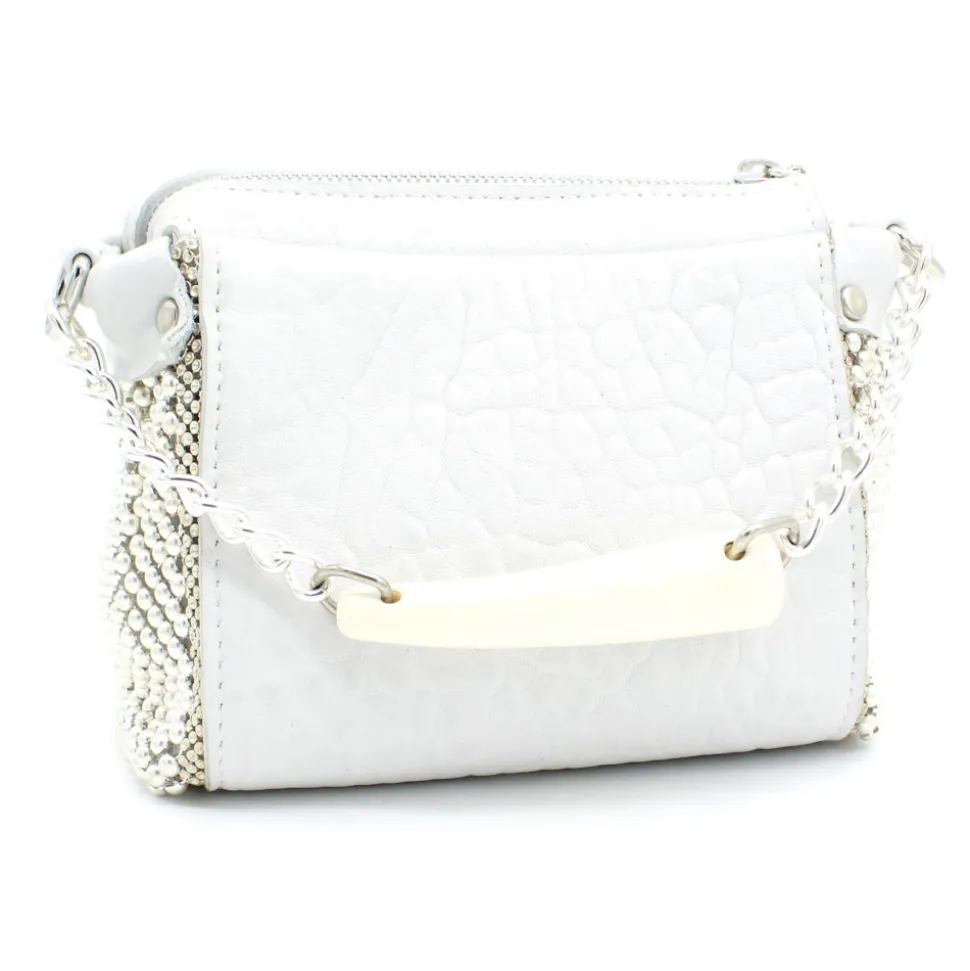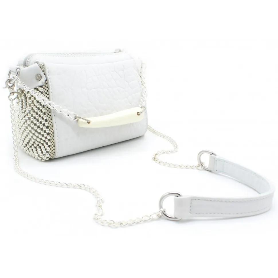 Laura B – Bauletto Mini – Leather and Mesh Bag – White – Strap Bag
