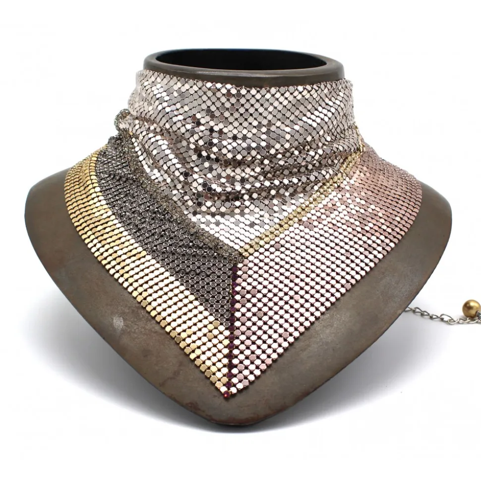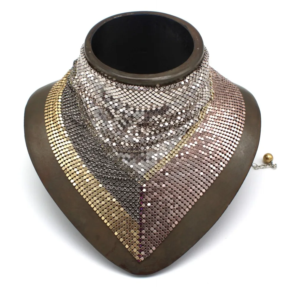 Laura B – Jeanne Bandana – Mesh Necklace – Rose, Gold, Shiny Silver – Gold Swarovski – Handmade Necklace