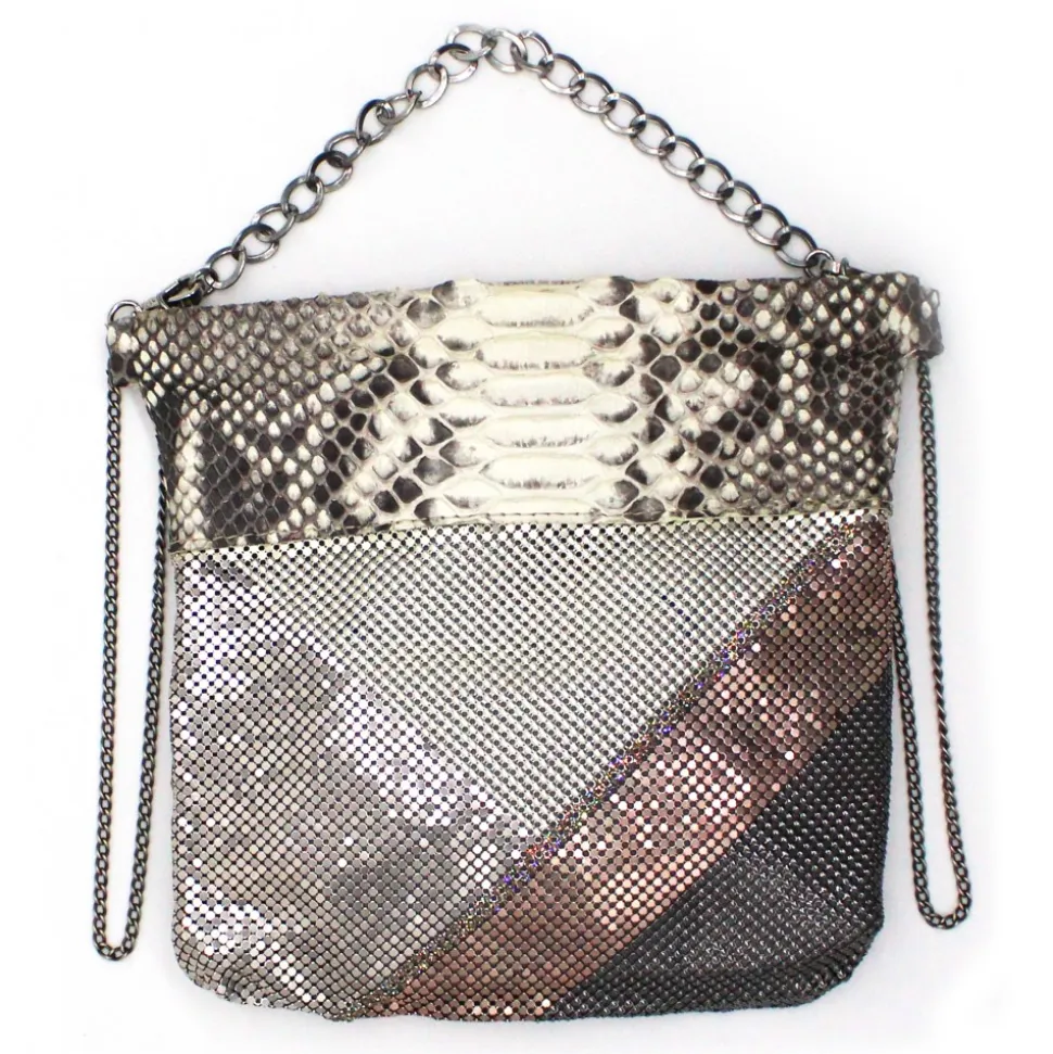 The signature of Laura B is the use of metallic mesh accompanied by other luxury materials such as python and crocodile leather, horn, semi-precious stones and more.