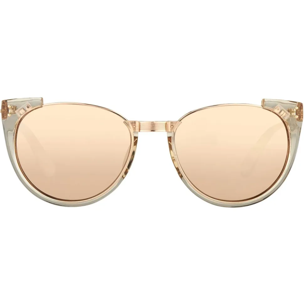 Inspired by the vintage browline silhouette, these handcrafted high-shine ash acetate Linda Farrow sunglasses are detailed with luxurious 18-22 carat rose gold-plated titanium rims and rose gold precious lenses. An exposed top frame creates an unexpected, contemporary update, finished with an embossed nose bridge and stainless steel raised pins to the temples.