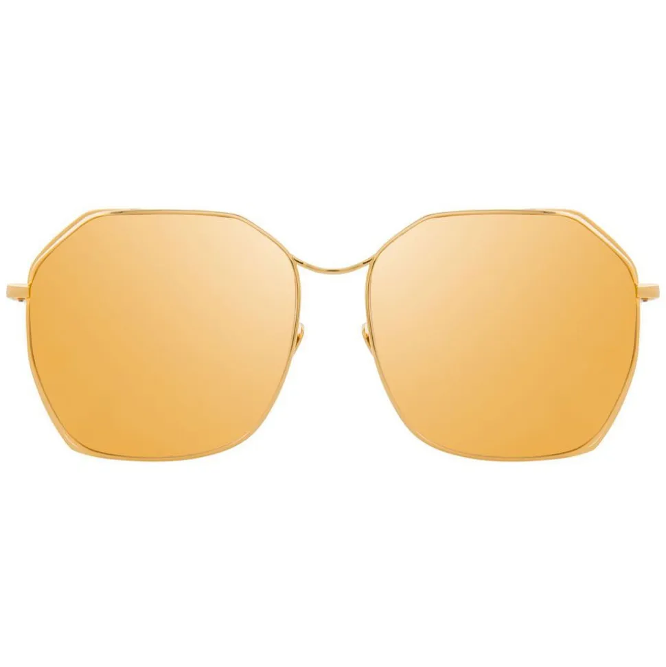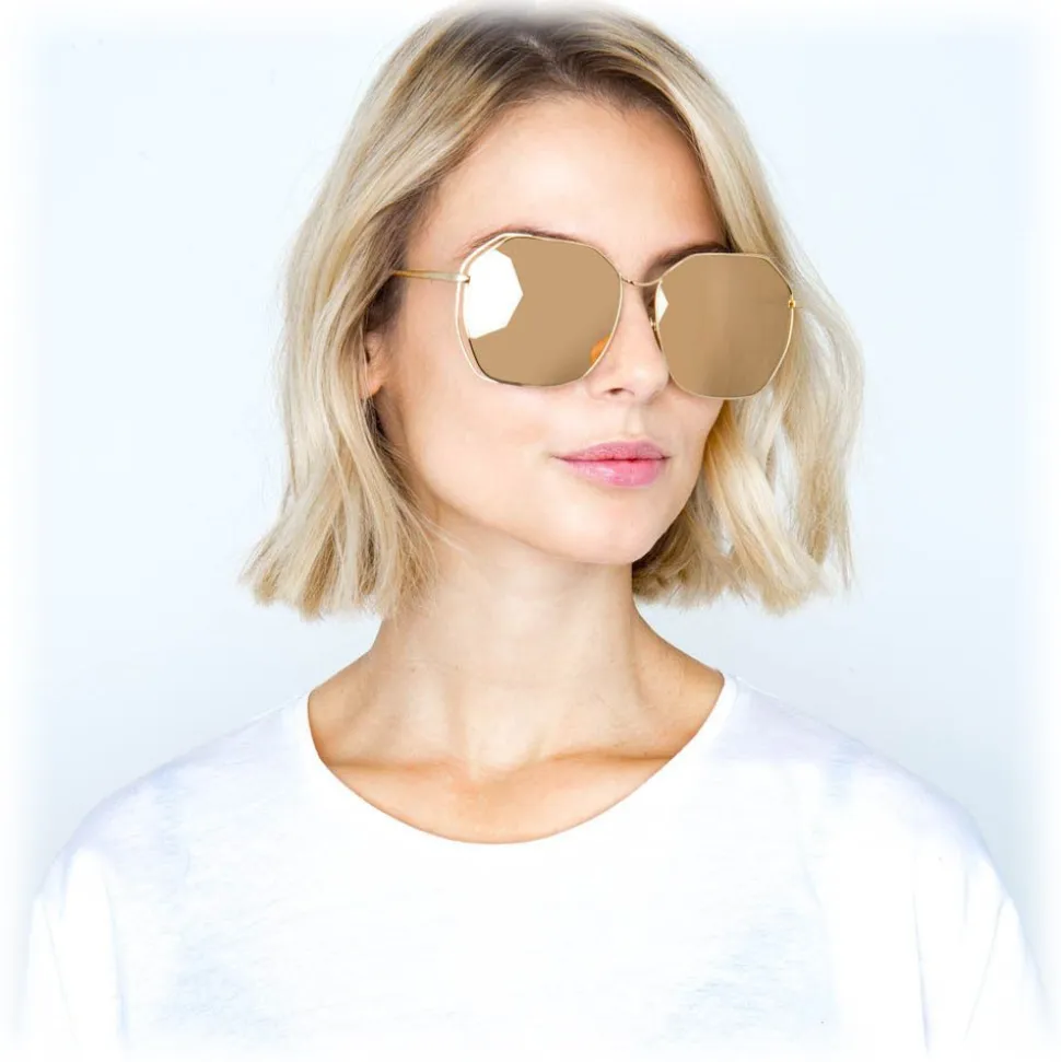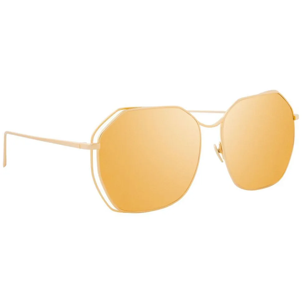 Bringing together elements of 70s styling with luxurious materials, these oversized Linda Farrow sunglasses are made by hand entirely from 18-22 carat yellow gold-plated lightweight titanium. A co-ordinating frame creates an unusual floating effect between the rims, which contours the gold precious lenses.