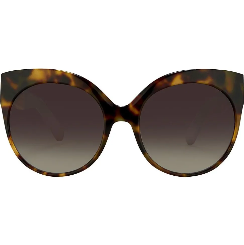 Imbued with a sense of retro glamour, these oversized cat eye Linda Farrow sunglasses are handcrafted from Japanese high-shine acetate in tortoiseshell. Accented with intricate 18-22 carat gold-plated titanium cage detailing to the temples which is soldered by hand and dusk gradient lenses, these sunglasses showcase exceptional craftsmanship.