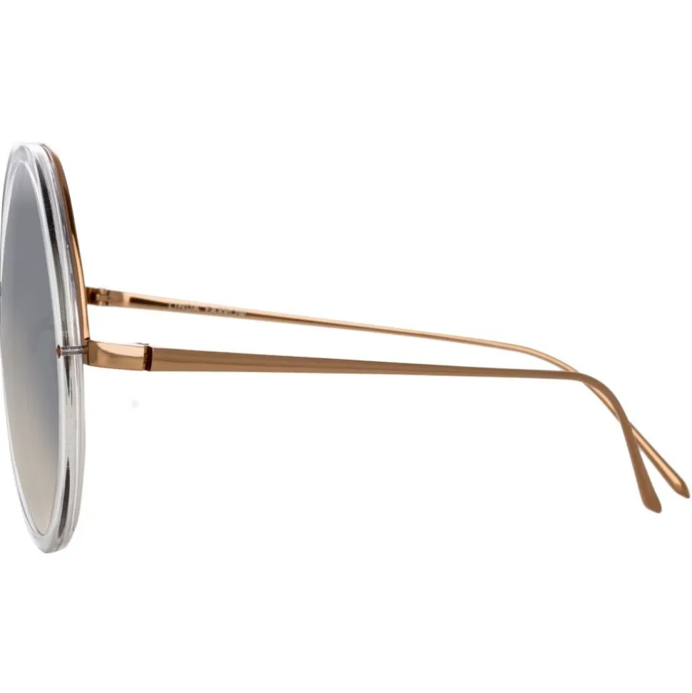 This season, the timeless 457 sunglass takes you on a journey through Morocco, with earthy tan gradient lenses and rose gold-plated ultra lightweight titanium temples evoking balmy, golden dusks. Framed by rich, navy Italian acetate, this classic round sunglass is complete with signature Linda Farrow detailing and branding.