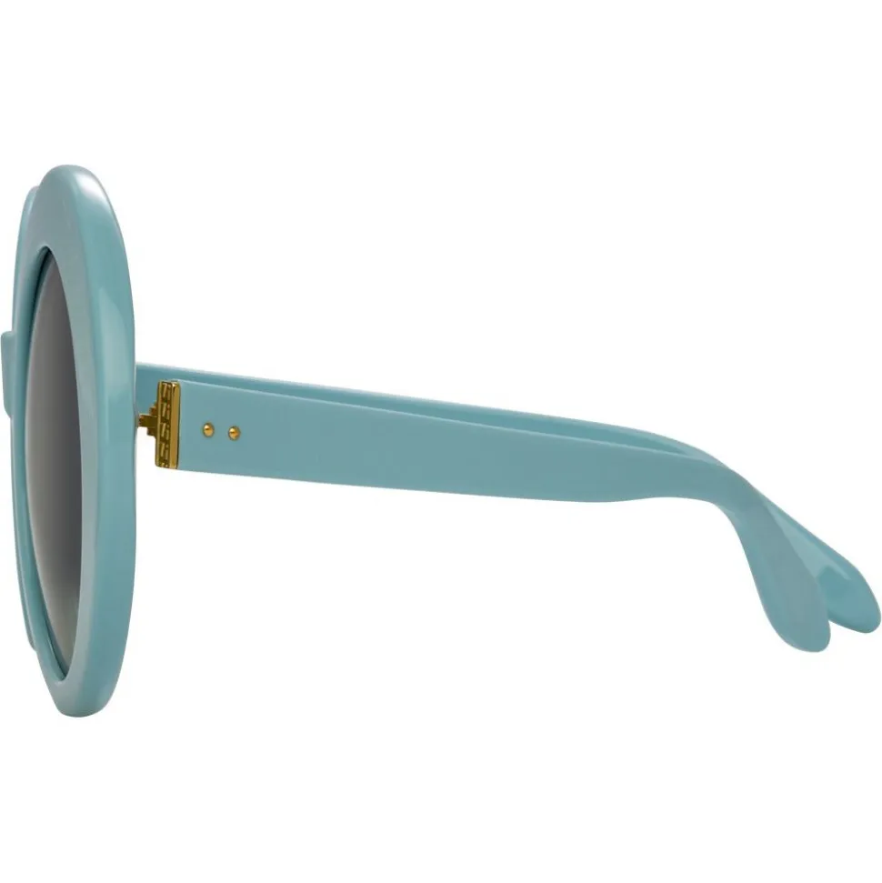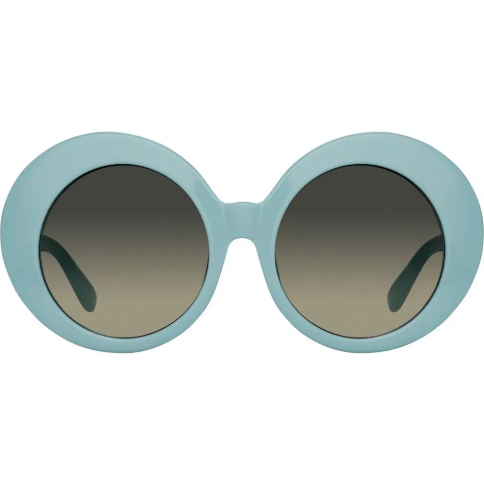 Inspired by vintage poolside glamour captured by photographer Slim Aarons, these glamorous oversized Linda Farrow sunglasses will make a bold statement. Crafted from porcelain blue Italian acetate paired with blue gradient nylon lenses, luxurious finishes include 18-22 carat yellow gold-plated signature raised pins and temple capping.
