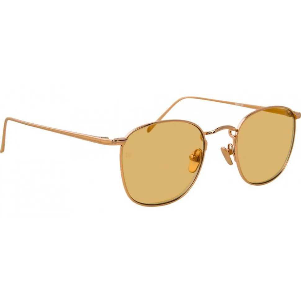 Marrying vintage-inspired silhouettes with luxurious materials, these men’s Linda Farrow square browline sunglasses are handcrafted entirely from 18 – 22 carat rose gold-plated Japanese titanium. With contrasting peach lenses, the sleek, lightweight temples are attached at the top of the frames, finished with the Linda Farrow logo printed in white on the inside of the temple.