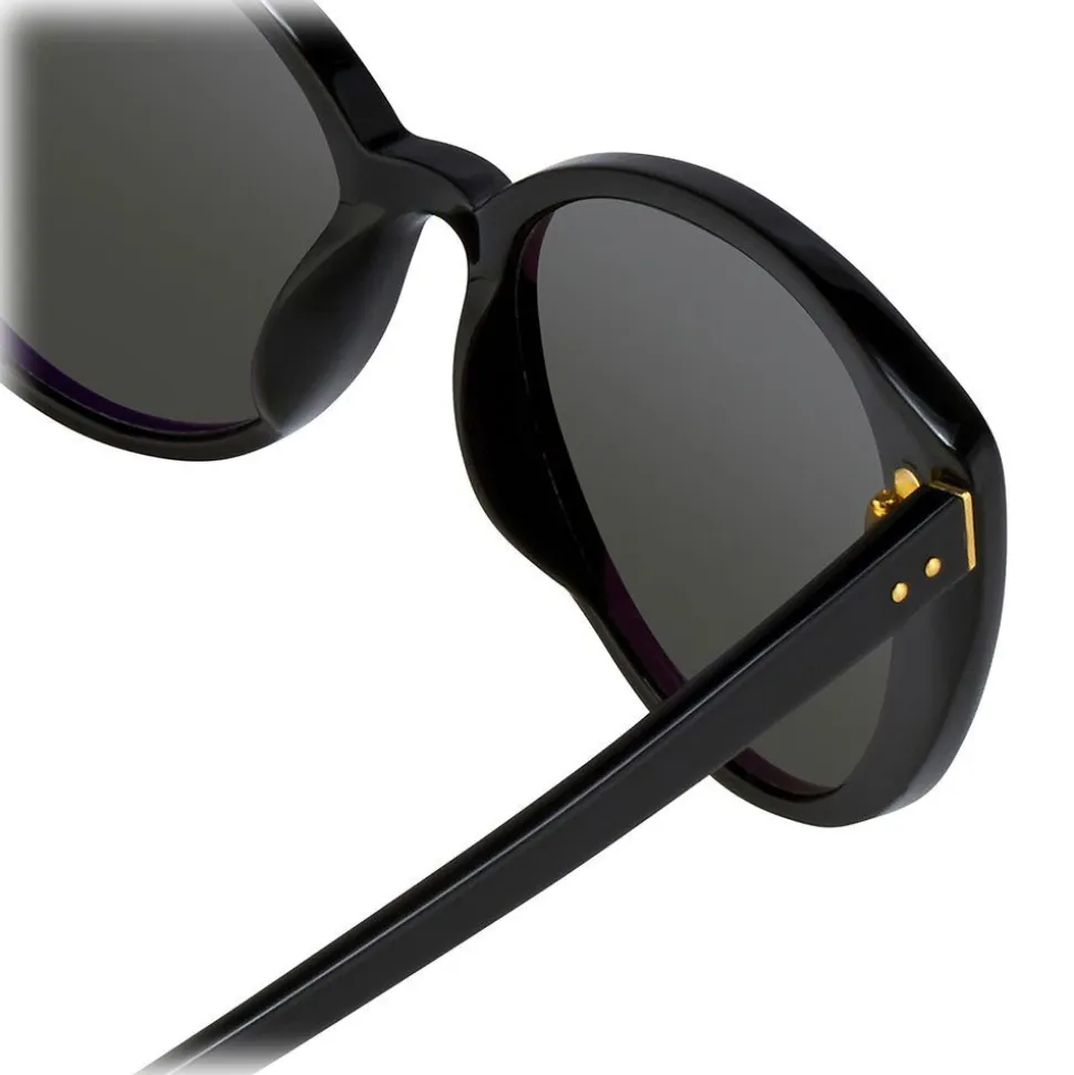The epitome of timeless chic, these Linda Farrow sunglasses are handcrafted from high-shine black Japanese acetate in a flattering cat eye silhouette. With co-ordinating classic grey nylon lenses, signature details include raised pins and 18-22 carat gold-plated titanium capped hinges.