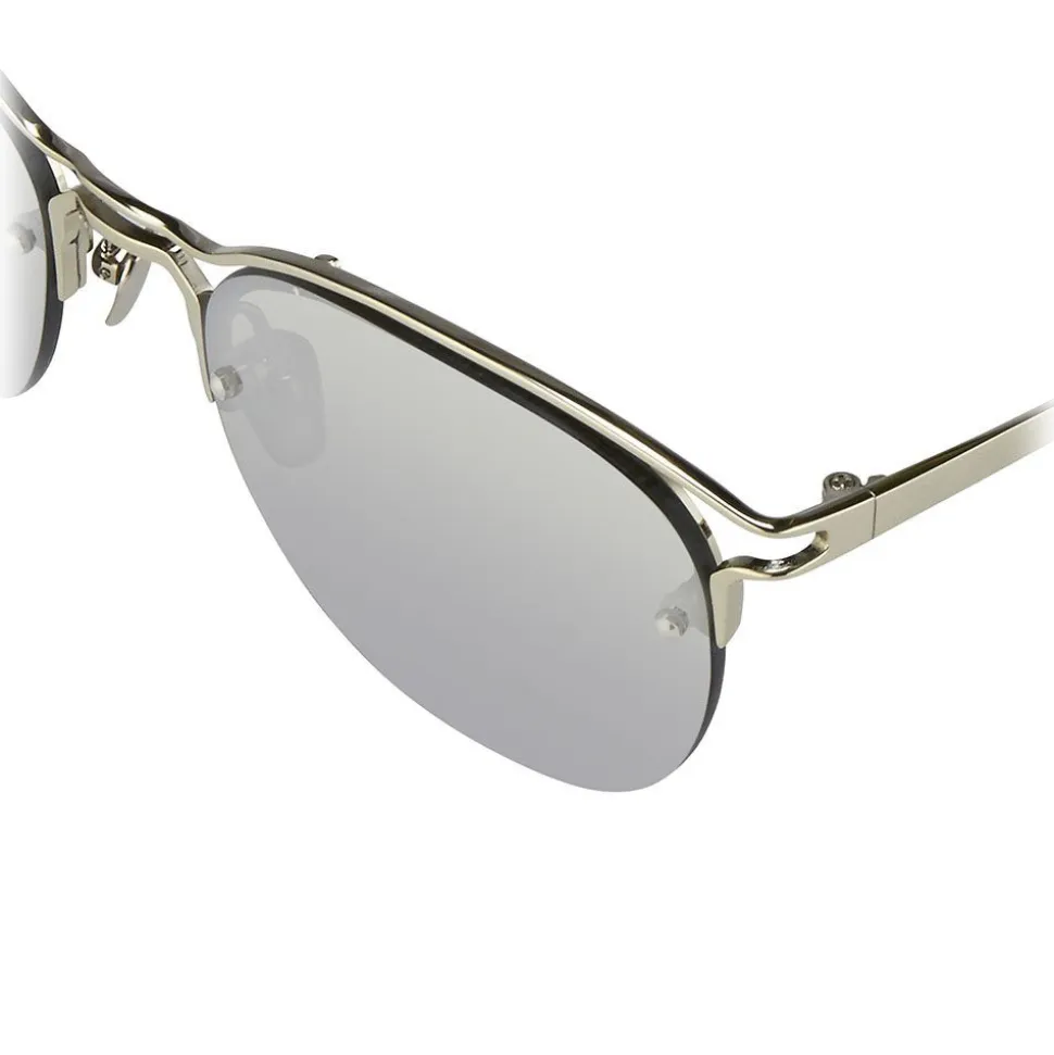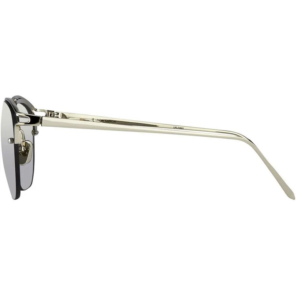 Handcrafted from 18-22 carat white gold-plated Japanese titanium, these Linda Farrow browline sunglasses are the epitome of sophistication. With co-ordinating gold precious lenses, these sunglasses feature an innovative outlined top frame which creates a floating lenses effect.