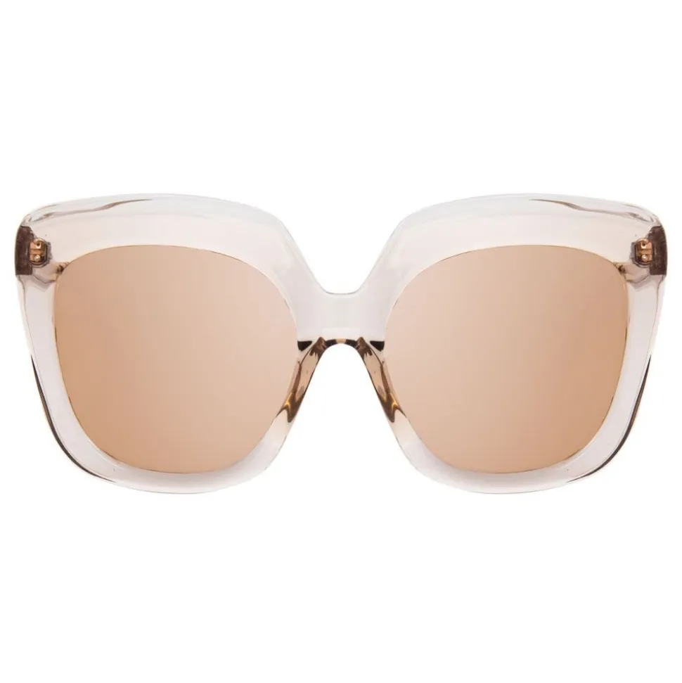 Statement, oversized Linda Farrow sunglasses crafted by hand from high shine, chunky ash Italian acetate. With a heavier top frame and contrasting rose gold precious lenses, signature details include bevelled frames to contour the lenses, raised pin details and hinges capped in 18-22 carat rose gold.