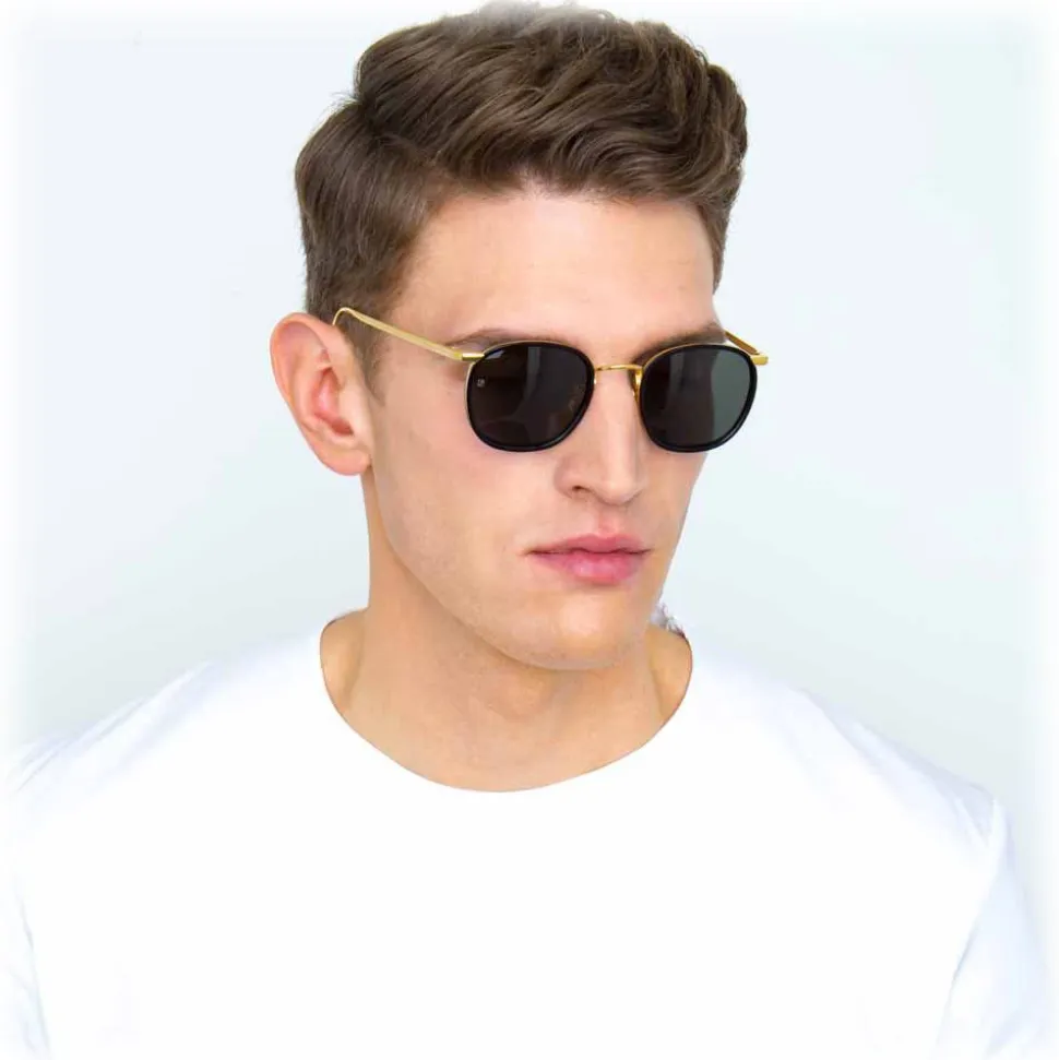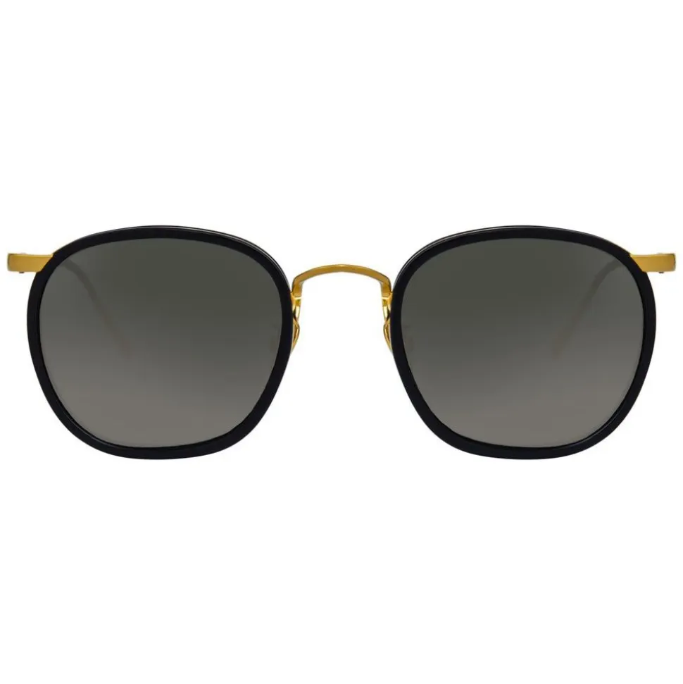 In a timeless combination of black and gold, these retro-inspired oval sunglasses from Linda Farrow are handmade from an elegant combination of 18-22 carat yellow gold-plated titanium and hand polished black Italian acetate, with solid grey nylon lenses.