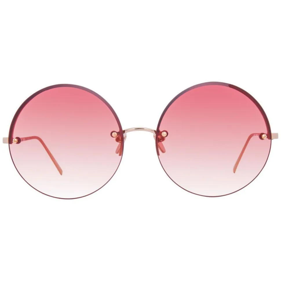 Bringing the decadence of the seventies into a modern perspective, these oversized round Linda Farrow sunglasses are handcrafted with 18-22 carat rose gold-plated titanium. Running through the curved nose bridge, along the back top half of the frame and into slimline temples, these sunglasses feature contrasting red gradient lenses, contoured with an epoxy painted inside the lens groove to create an outline.