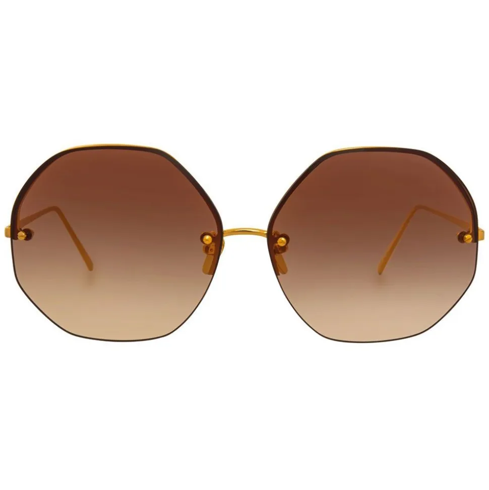 In an oversized angular silhouette, these luxurious Linda Farrow sunglasses are handcrafted with 18-22 carat yellow gold-plated titanium. Running through the curved nose bridge, along the back top half of the frame and into slimline temples, these sunglasses feature contrasting brown gradient lenses.