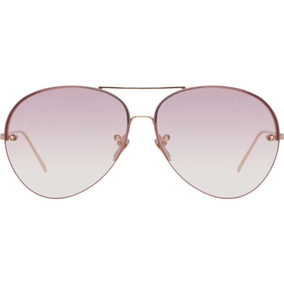 Elegant and timeless, these Linda Farrow aviator sunglasses are handcrafted purely from 18-22 carat light gold-plated lightweight titanium with co-ordinating pink gradient nylon lenses. Light gold-plated lightweight titanium runs along the back top half of the frame and into tapered logo detailed temples for a sophisticated contrast, finished with curved tips and adjustable nose pads for added comfort.