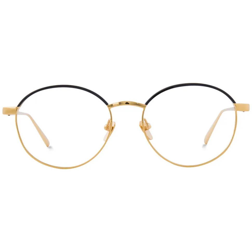 In a timeless oval silhouette, these luxurious unisex Linda Farrow optical glasses are handcrafted with 18-22 carat gold plated titanium frames, contoured with a black Italian acetate half Windsor rim. Streamlined, co-ordinating slim temples are tapered with Japanese bulb tips, with the Linda Farrow logo in signature white inset in the inside of the temple. Adjustable nose pads provide superior levels of comfort.