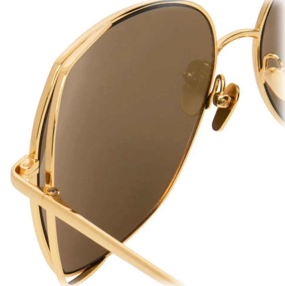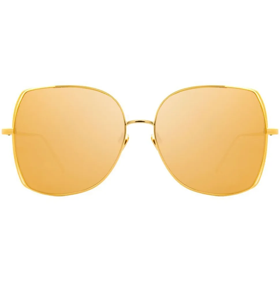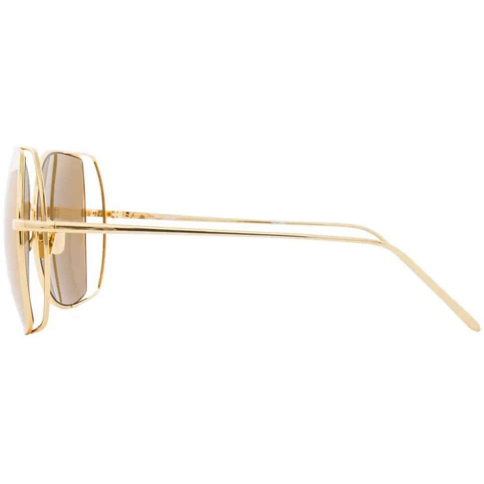 In a glamorous oversized silhouette, these luxurious Linda Farrow sunglasses are made by hand entirely from 18-22 carat yellow gold-plated lightweight titanium. A co-ordinating double rim creates a feature floating effect, which contours the gold precious lenses.