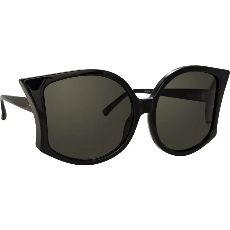 In an oversized winged Jackie O silhouette, the Lerreta brings inspiration from the heyday of the jet set captured by Slim Aarons with luxurious design. Crafted from black Italian acetate with co-ordinating dark grey nylon lenses, these Linda Farrow sunglasses are heavily bevelled for a glamorous finish, with signature details including tapered temples, 18-22 carat yellow gold-plated raised pins and temple capping.