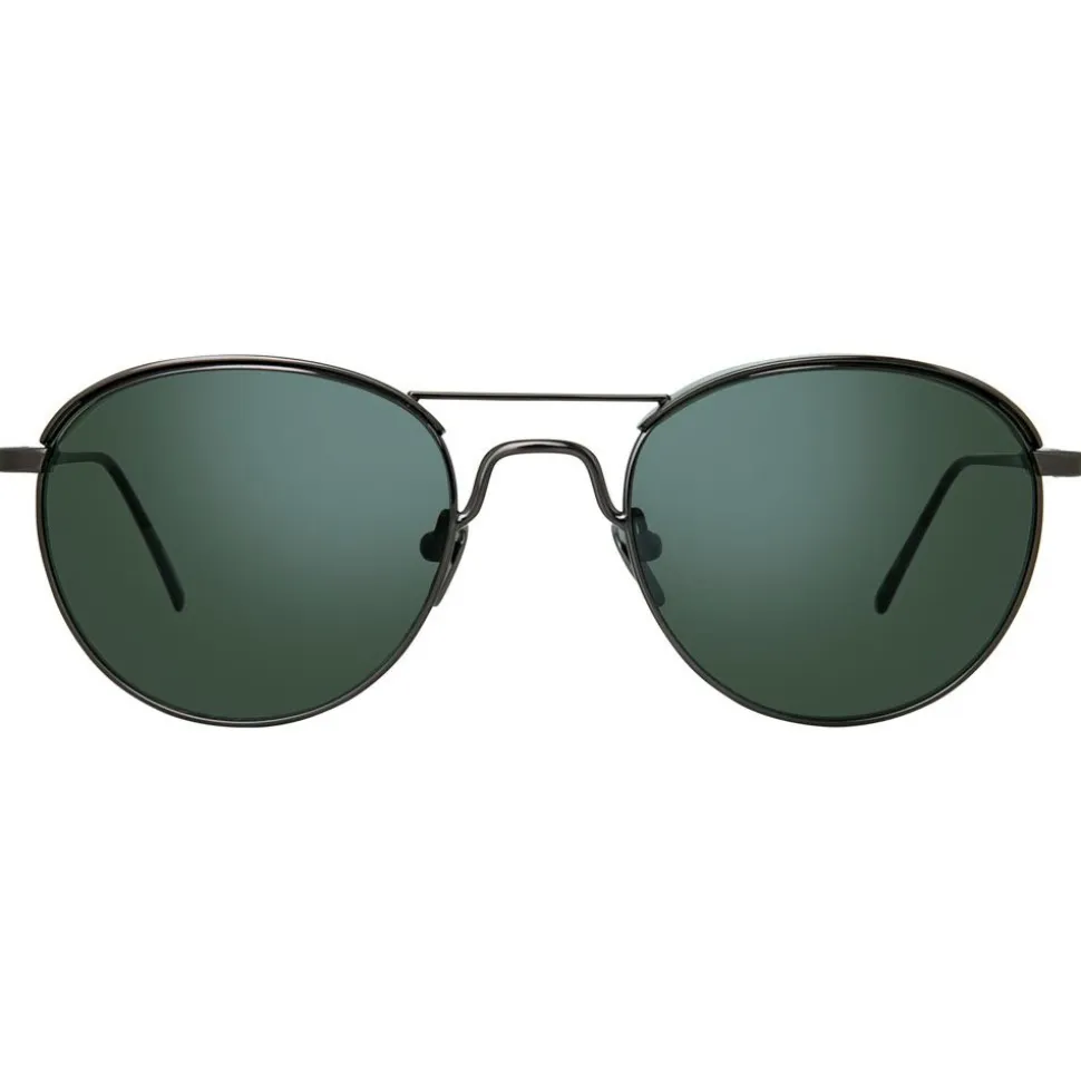 A luxurious update on a timeless silhouette, these men’s oval Linda Farrow sunglasses are handcrafted entirely from nickel-plated Japanese lightweight titanium. Paired with contrasting grey nylon lenses, this key style is elevated with subtle lip capping to the top of the lens, a raised feature nose bridge and contrasting flat top bar, with signature finishes including tapered temples with Japanese bulb tips and the Linda Farrow logo printed in white on the inside of the temple.